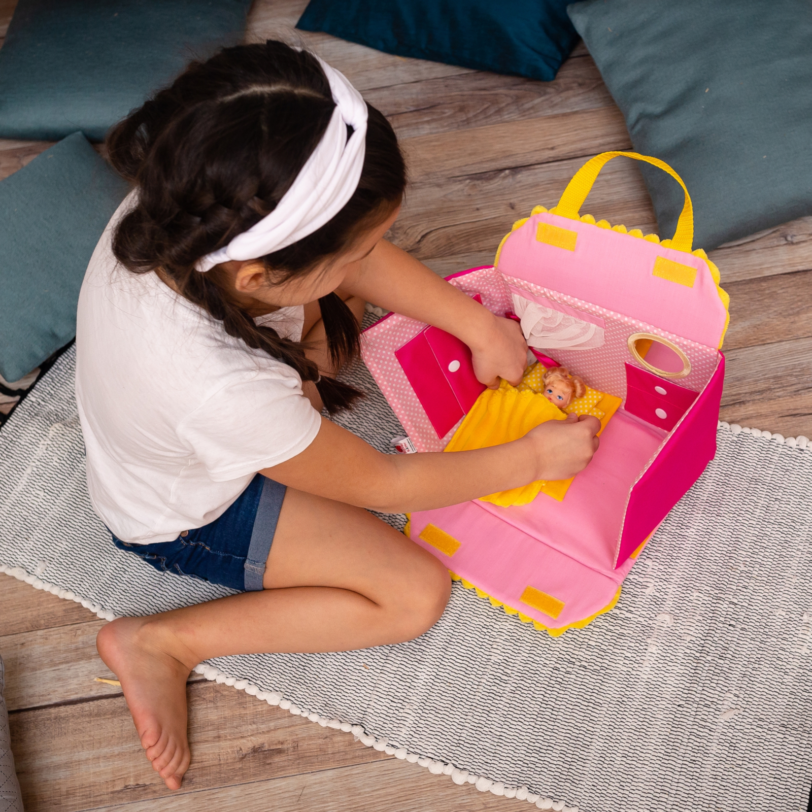 Maison de poupée en tissu ROTER KÄFER en jaune – Parfaite pour les enfants de 12 à 36 mois
