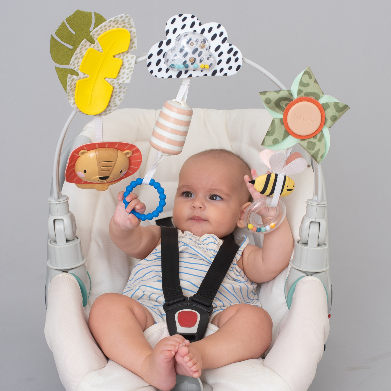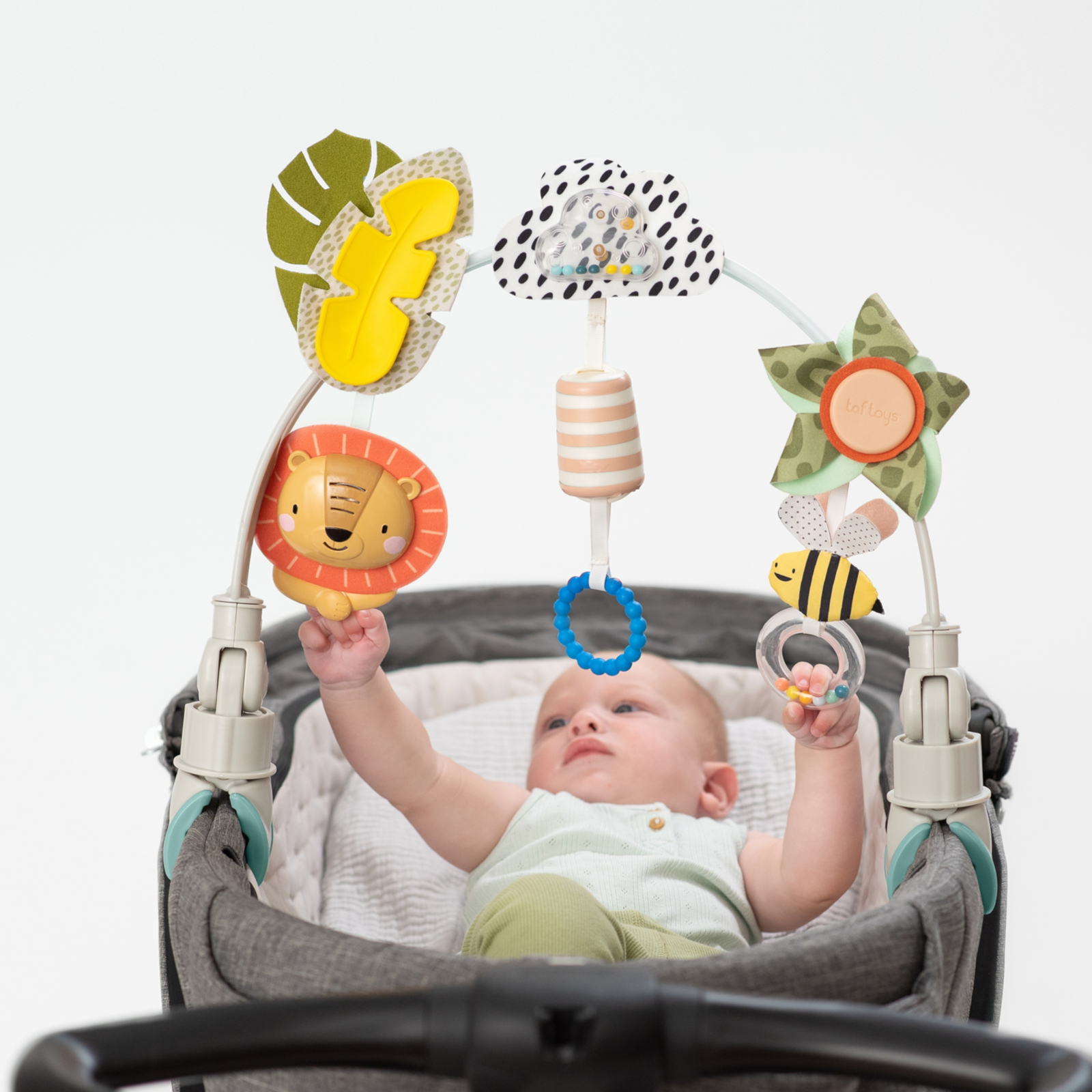 L'arche de jeux Savannah de TAF TOYS est spécialement conçue pour occuper votre bébé même en déplacement. Que ce soit lors de promenades en poussette ou à la maison – l'arche est particulièrement maniable et facile à emporter grâce à son poids léger. Ainsi, votre enfant peut apprendre et découvrir en s'amusant à tout moment et partout.