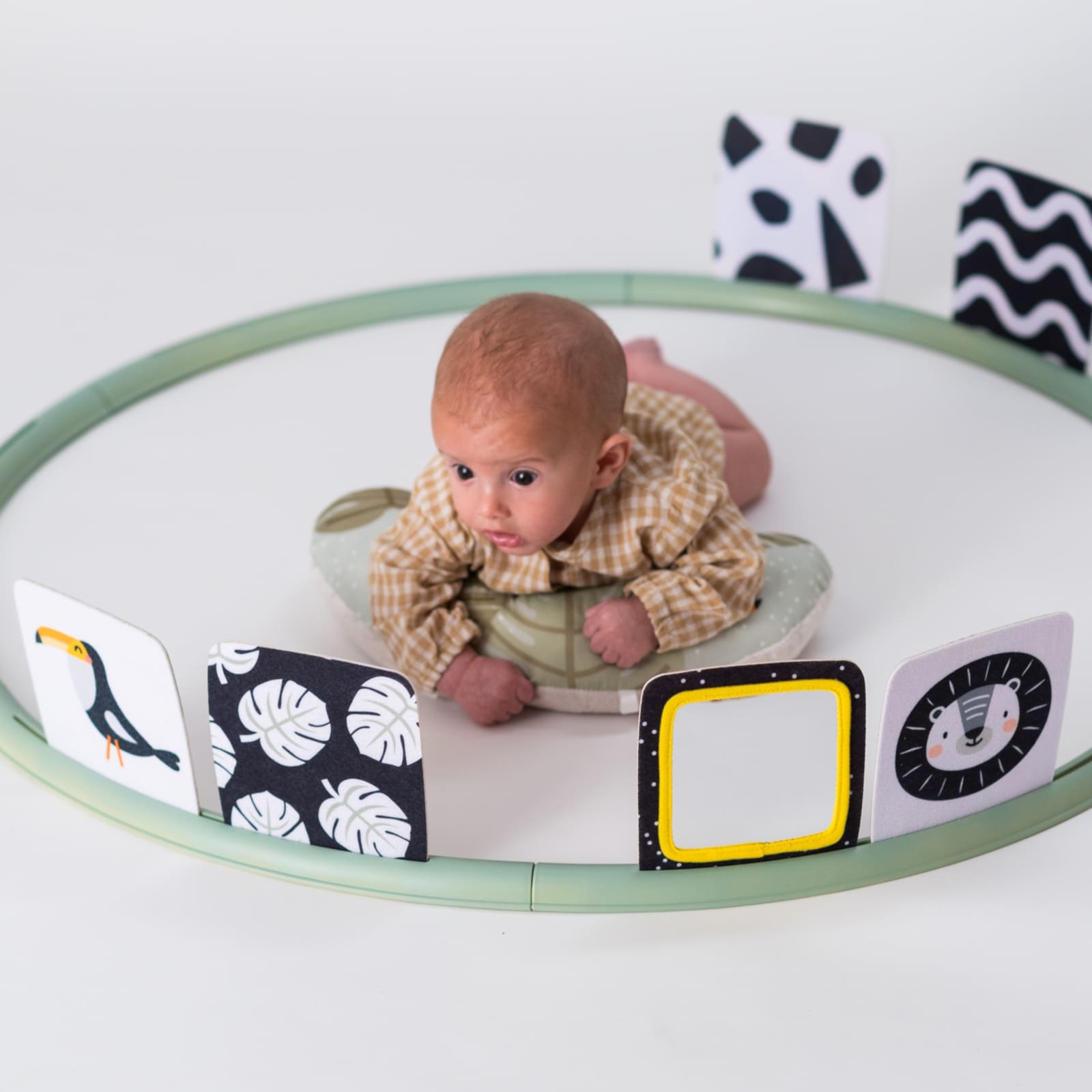 L'anneau d'activités renforce les muscles de votre bébé et le motive à bouger. C'est particulièrement important en position ventrale, lorsque les bébés apprennent à soulever la tête et à contrôler leur tronc. Le jouet est conçu pour encourager les petites mains à saisir les différents éléments, favorisant ainsi à la fois les capacités motrices globales et fines.