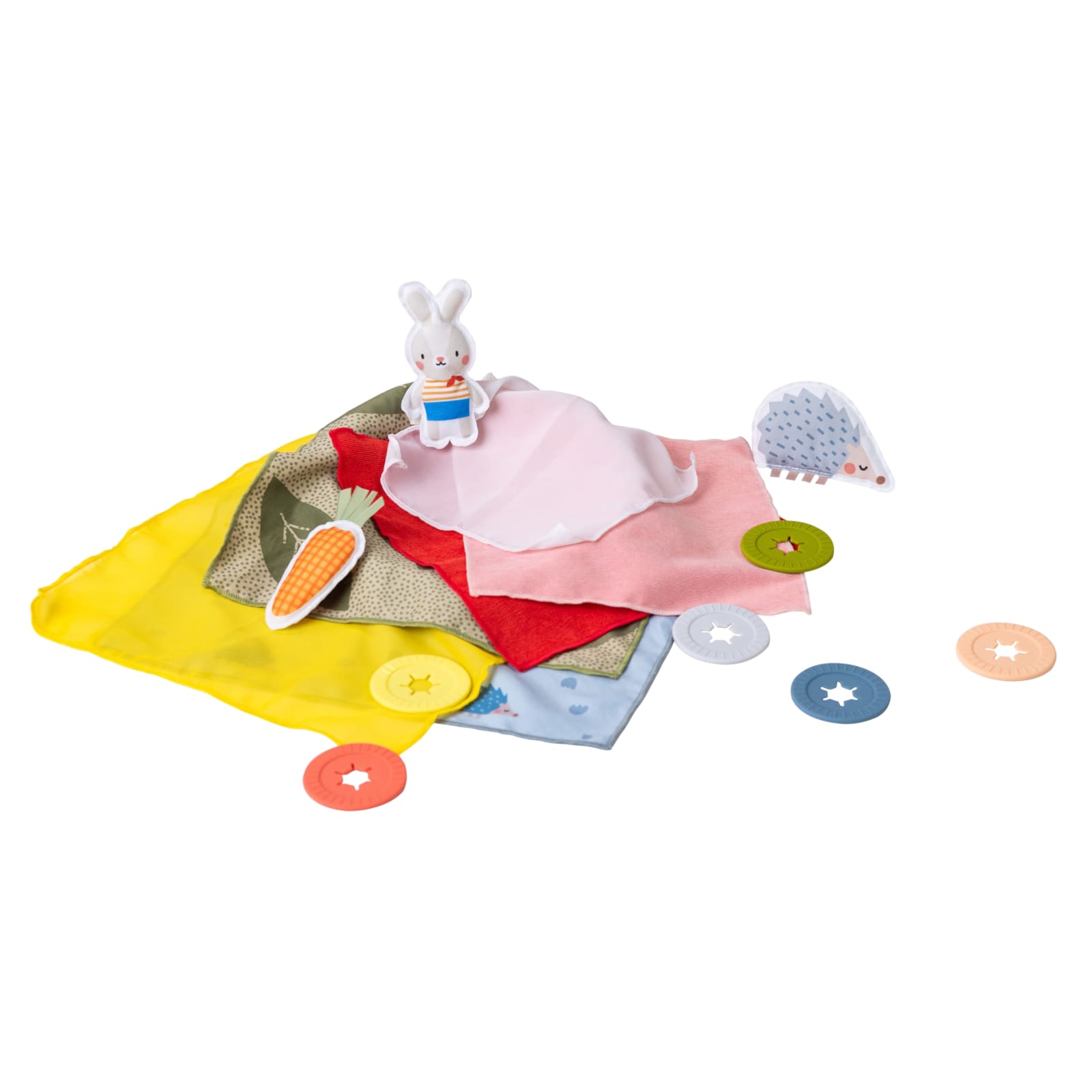 Le jeu éducatif TAF-TOYS Peek-a-boo est un jouet bien conçu, spécialement développé pour les enfants à partir de 18 mois. Il se compose de six carrés colorés équipés de fermetures en silicone assorties. Ce design pratique permet aux tout-petits de découvrir de manière ludique le processus d’ouverture, de retrait et de découverte. Sous les carrés se cachent des jouets-surprises qui invitent à l'exploration et à la découverte.
