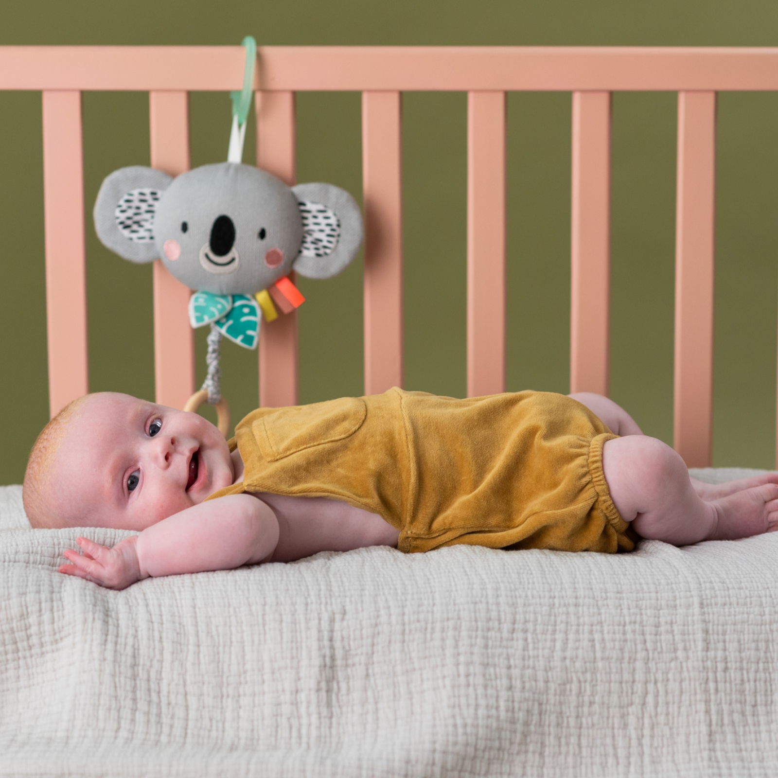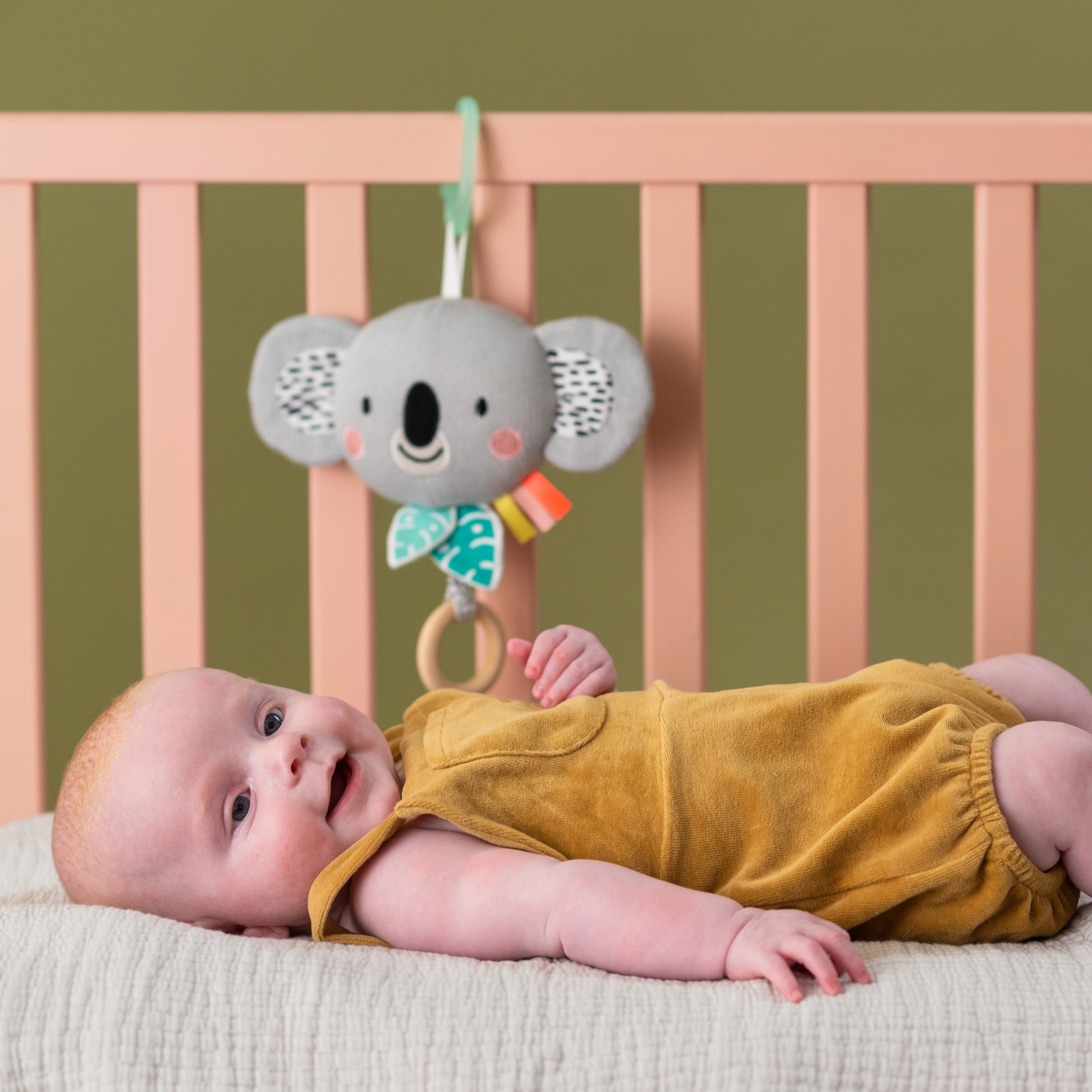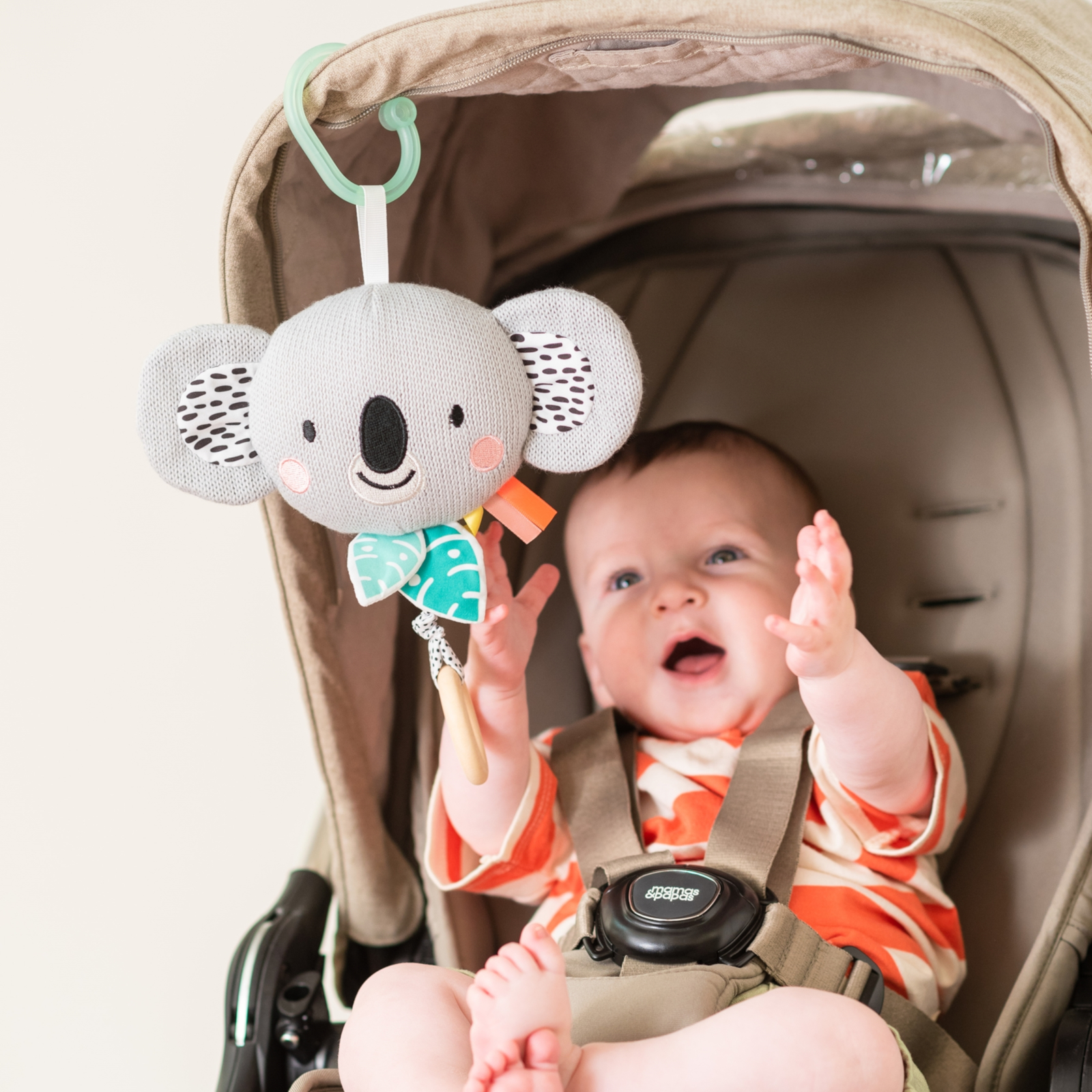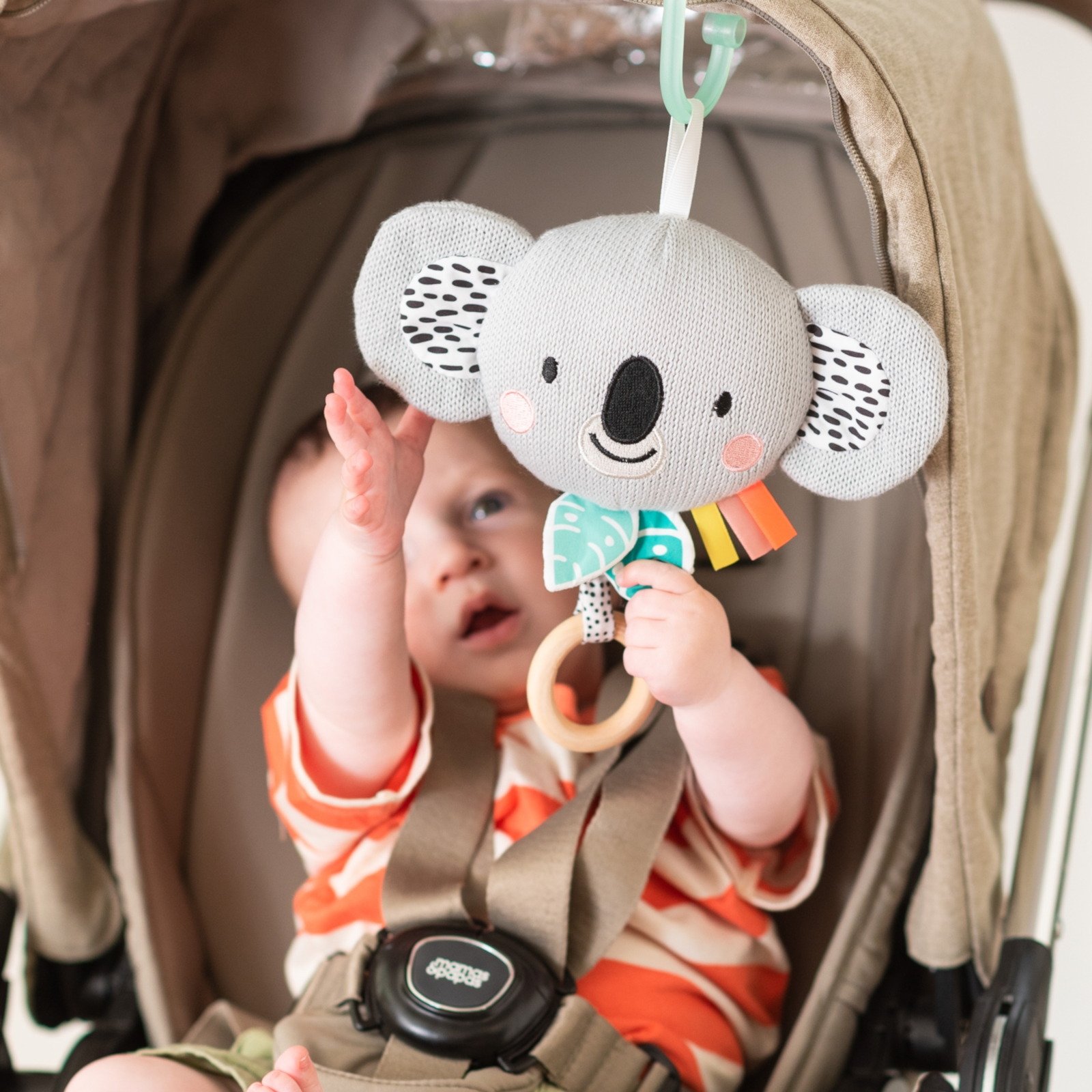 Kimmy le Koala peut être fixé facilement et en toute sécurité à différents endroits. Que ce soit sur le lit d'enfant, la poussette ou le siège auto – le jouet musical accompagne votre bébé partout avec des sons familiers. La fixation est conçue de manière flexible pour être facilement mise en place et retirée, sans limiter le confort de votre petit préféré.