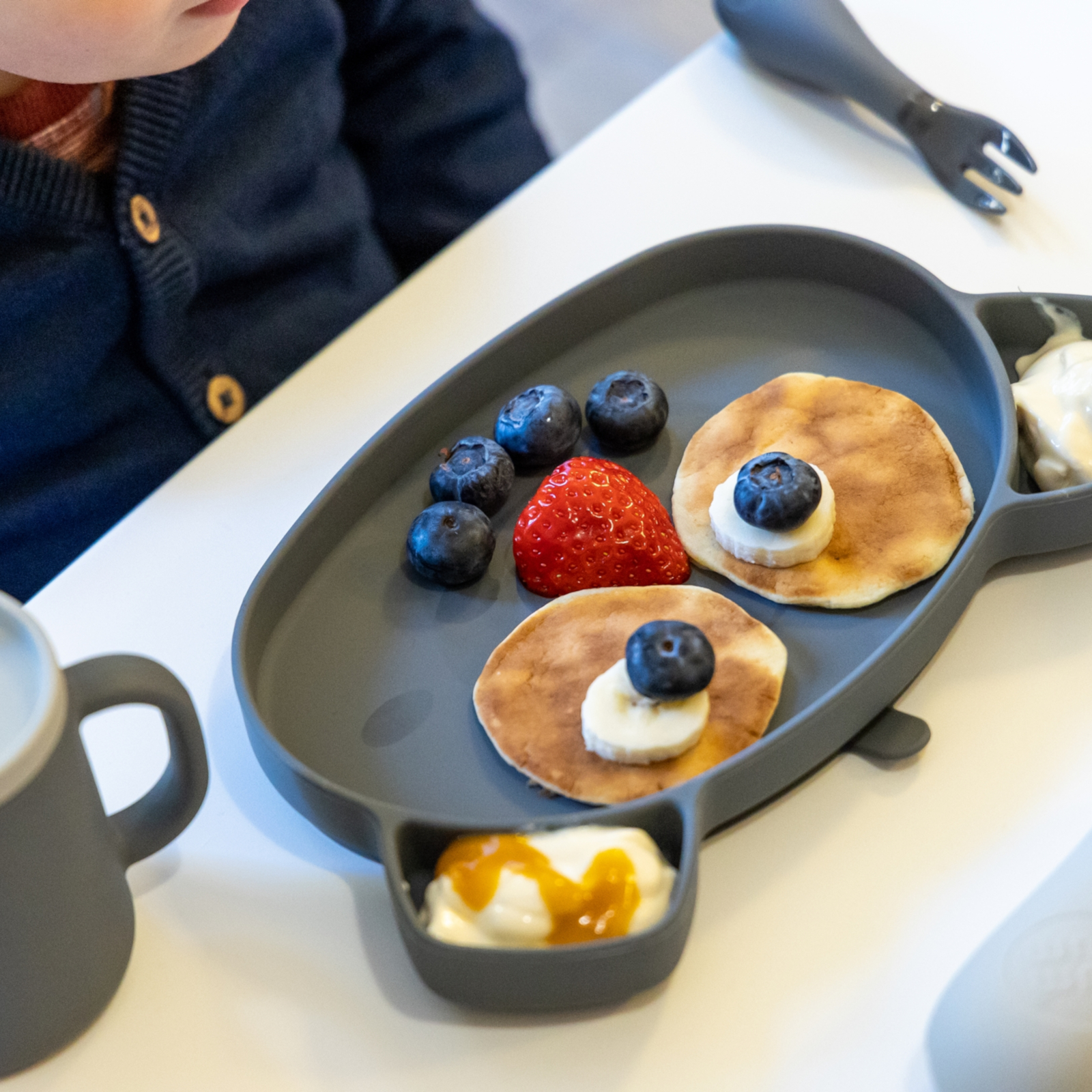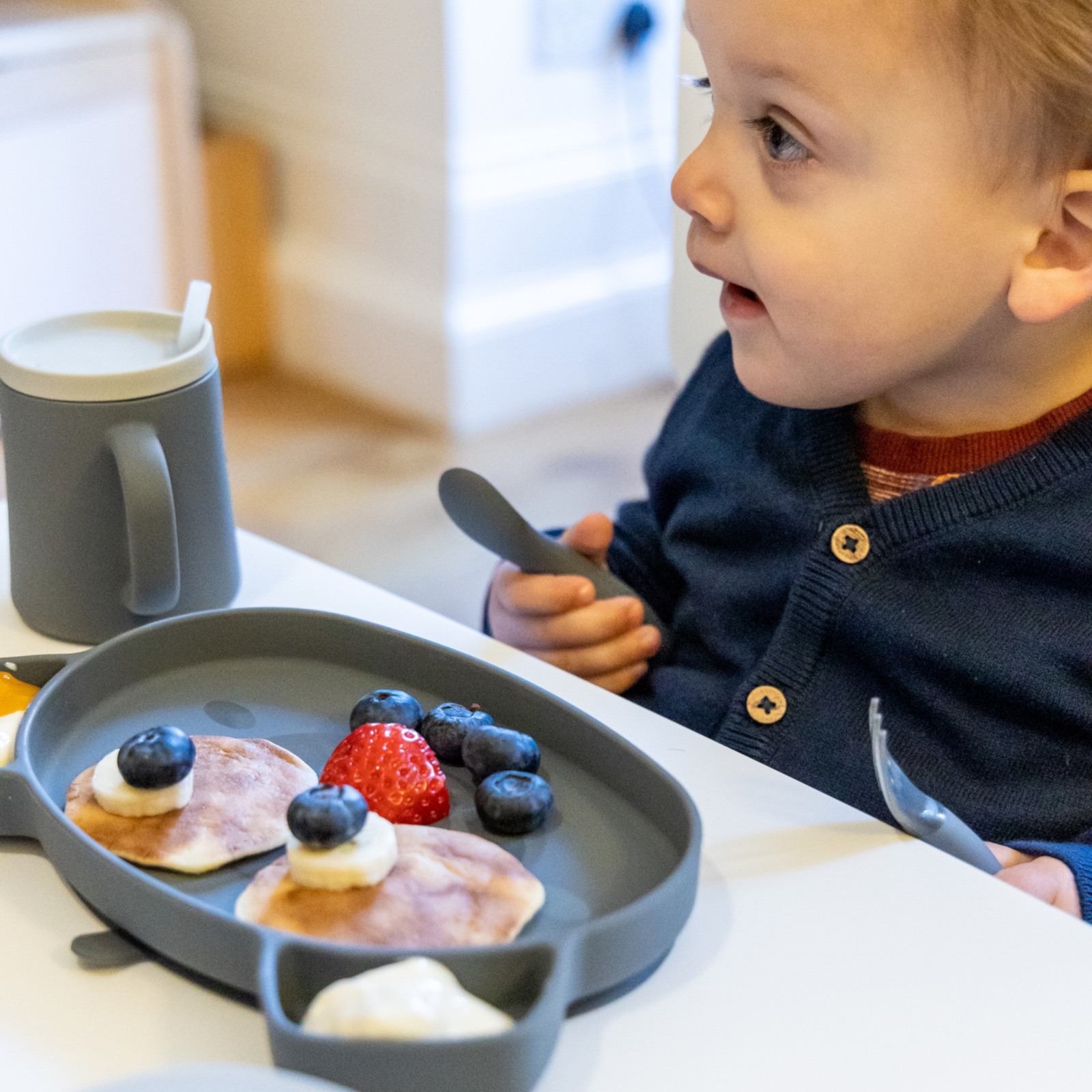 Set de vaisselle bébé TUM TUM gris – Pratique et réfléchi pour les premiers repas