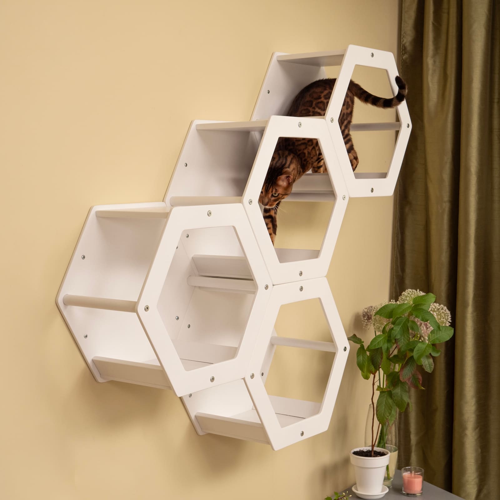 La structure en nid d’abeilles invite à l’exploration et au repos, et motive votre chat à adopter un comportement actif. En même temps, les étagères sont parfaitement adaptées pour servir de niches de sommeil confortables lors des journées particulièrement calmes, où votre animal préféré peut se détendre.
