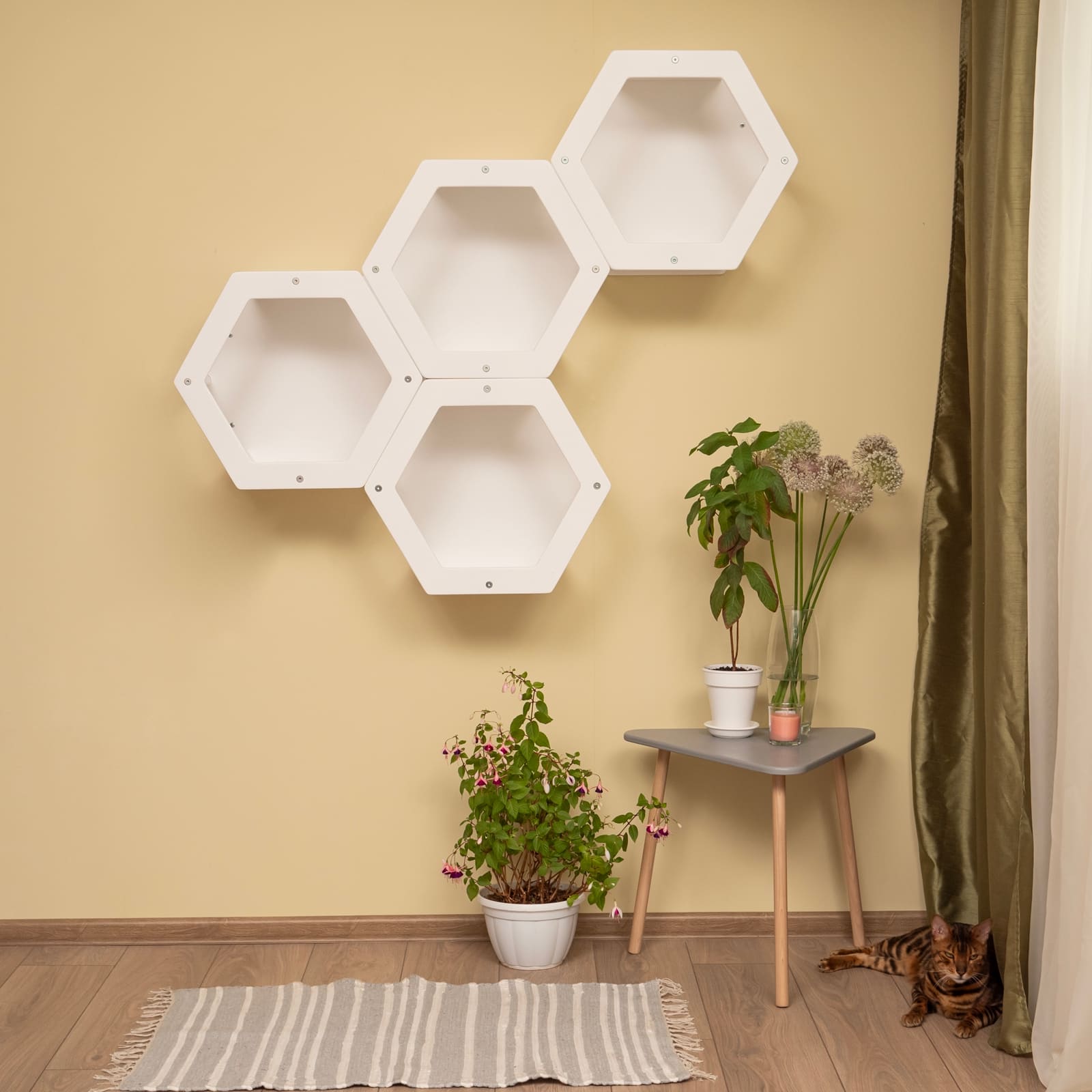Le WOWHELPERCO 4 alvéoles blanc est un ensemble mural unique composé de quatre étagères hexagonales. Fabriqué en bois naturel et contreplaqué de bouleau, le design s’intègre harmonieusement dans tout environnement de vie. L’aspect blanc clair assure un look moderne et en même temps intemporel, qui séduit autant les chats que les humains. Ce produit allie élégamment esthétique et fonctionnalité.