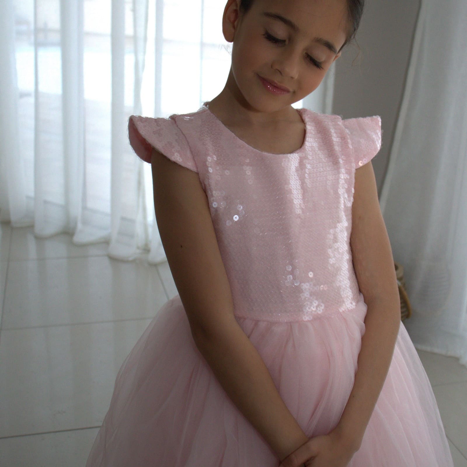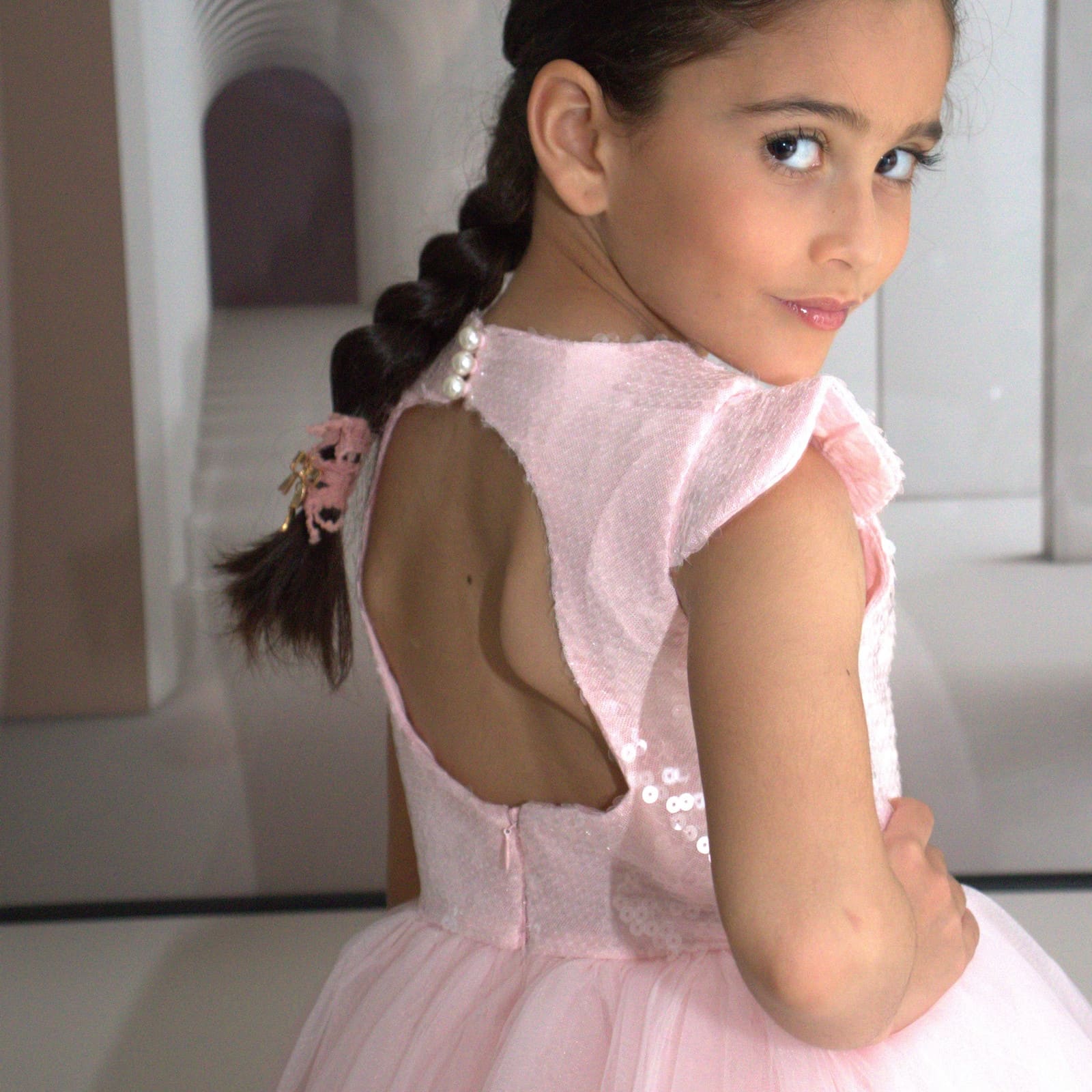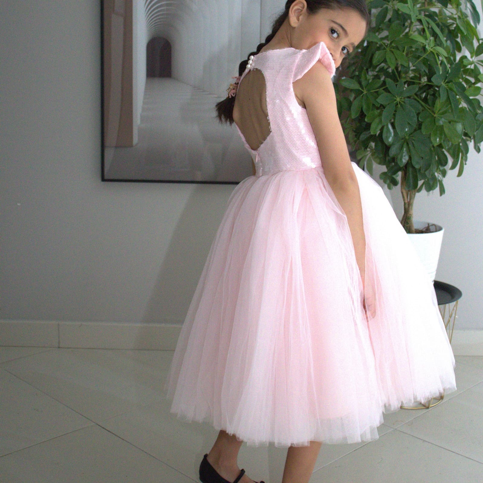 Une attention particulière a été portée à ce que la robe ne limite pas la mobilité des enfants, afin que les petites princesses puissent profiter pleinement de leur journée. La délicate couleur rose complète le style gracieux et rend la robe polyvalente.