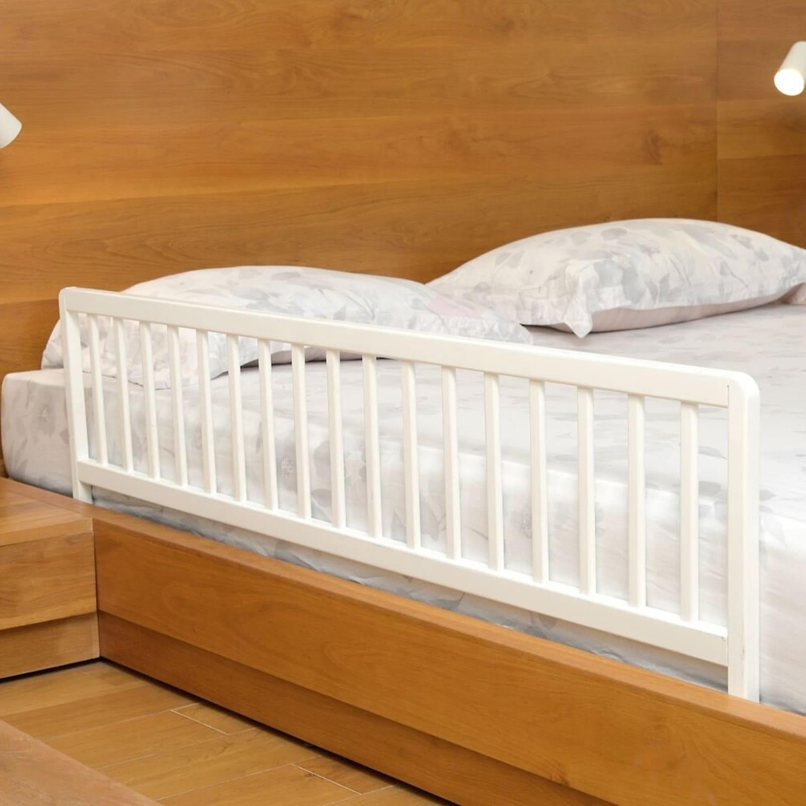 Wenn das Gitter nicht gebraucht wird, lässt es sich kompakt zusammenklappen und platzsparend verstauen. So bleibt mehr Stauraum im Schlafzimmer und du kannst es bei Bedarf rasch wieder einsetzen.