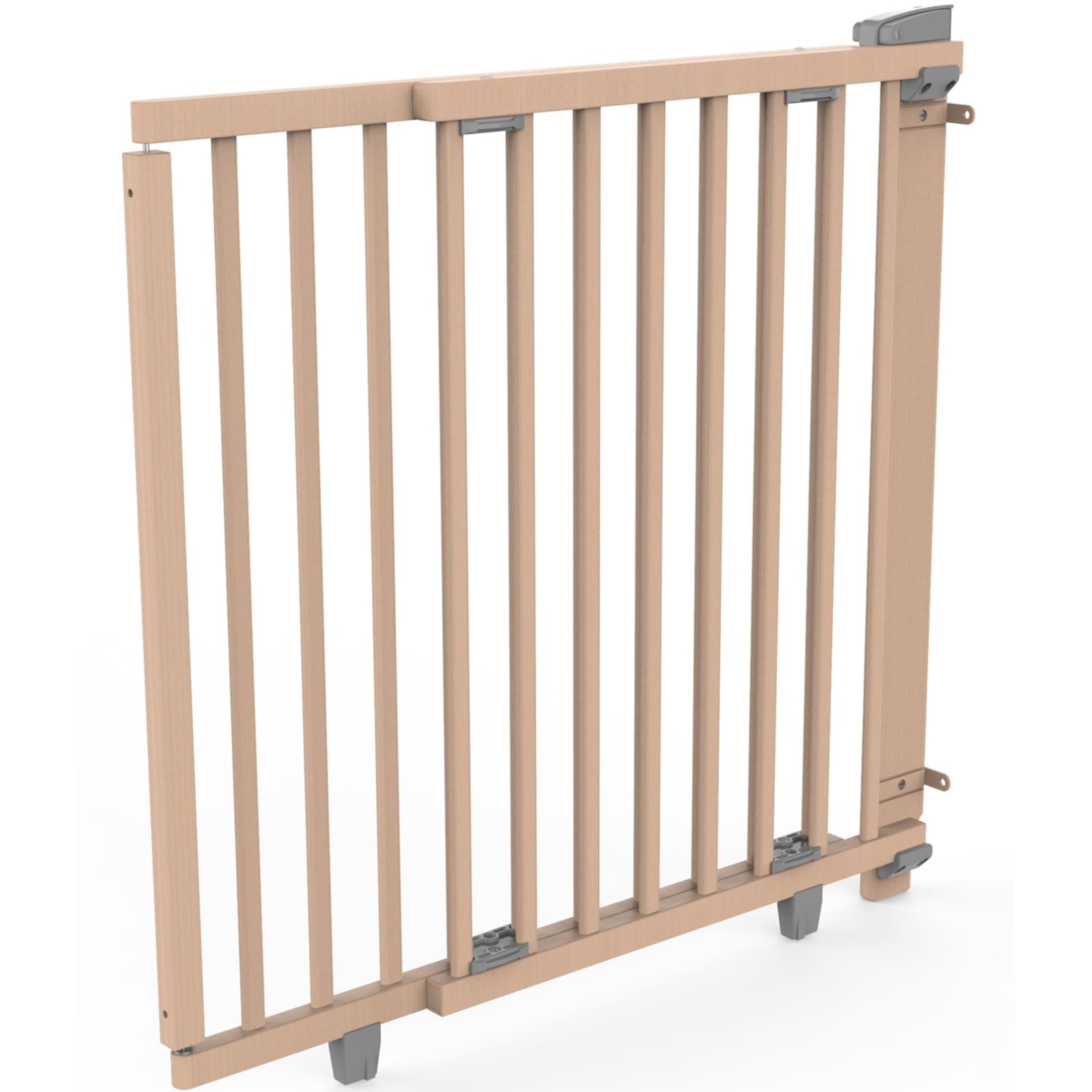 Mit einer Höhe von 83 cm bietet das Gitter zuverlässigen Schutz vor ungewolltem Durchschlüpfen für Kleinkinder und Haustiere. Die stabile Konstruktion und der kindersichere Einhandverschluss sorgen dafür, dass das Tor nur bewusst geöffnet werden kann.