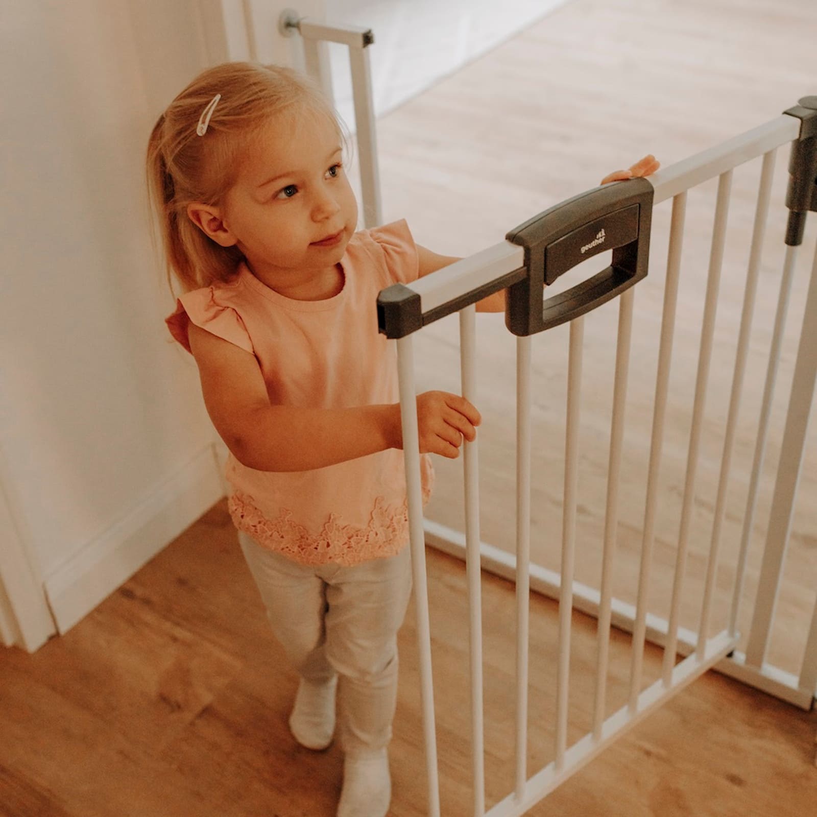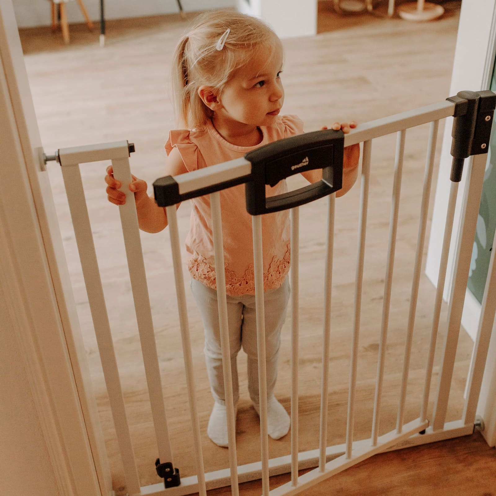 Das Easylock Plus schafft klare Abgrenzungen ohne die Bewegungsfreiheit der Erwachsenen einzuschränken. So kannst du ruhiger den Blick für dein Kind behalten, während es in einem sicheren Bereich spielt oder die Wohnung erkundet.