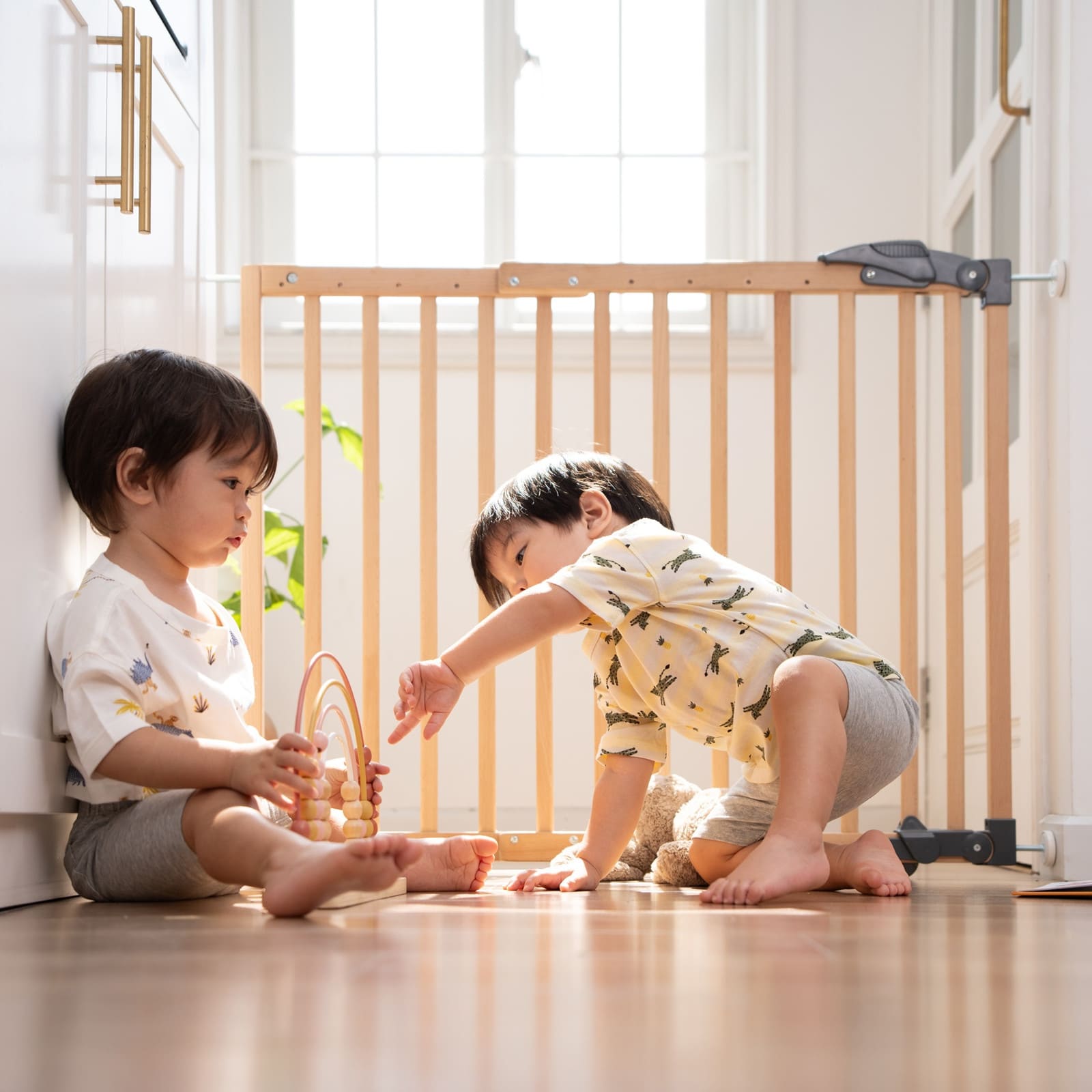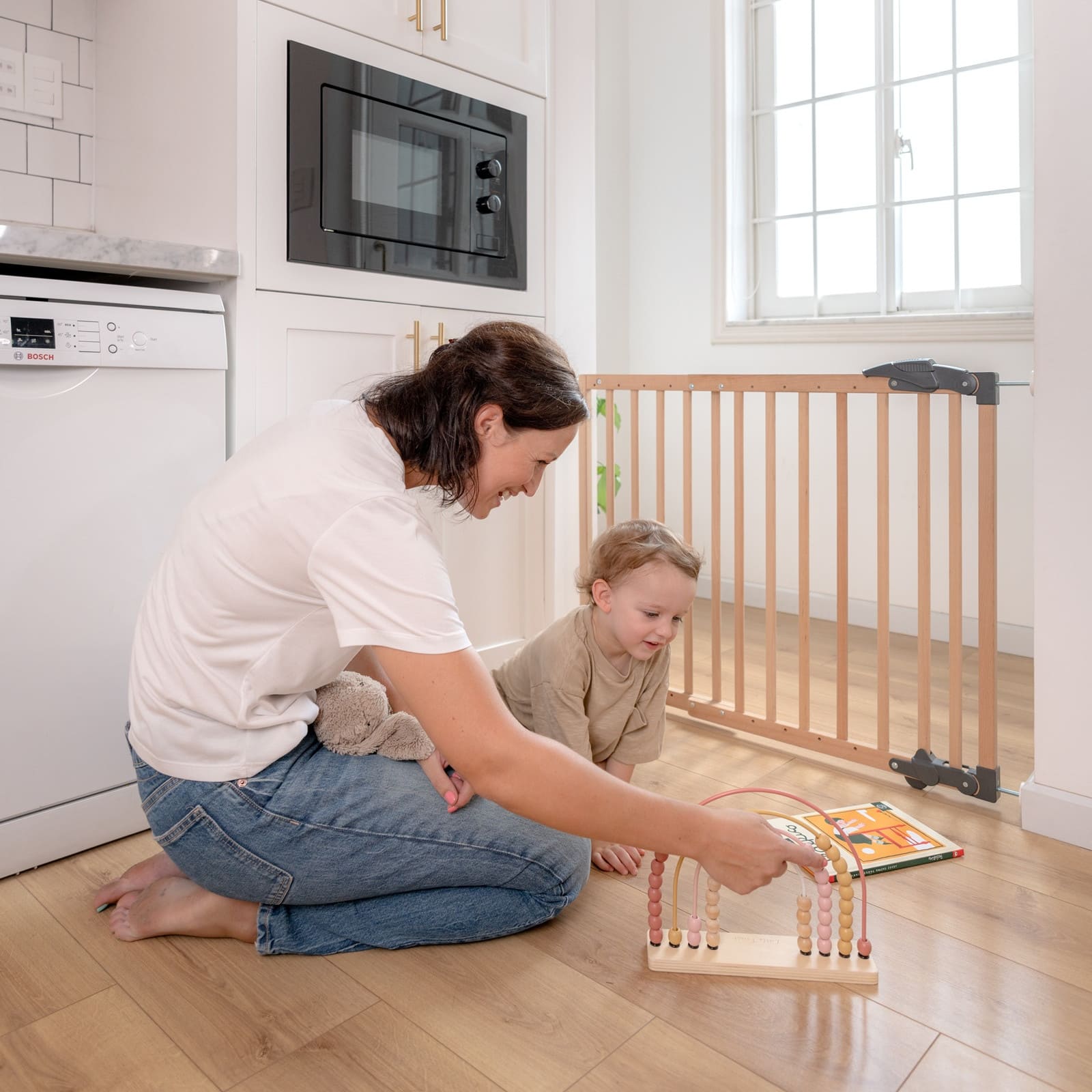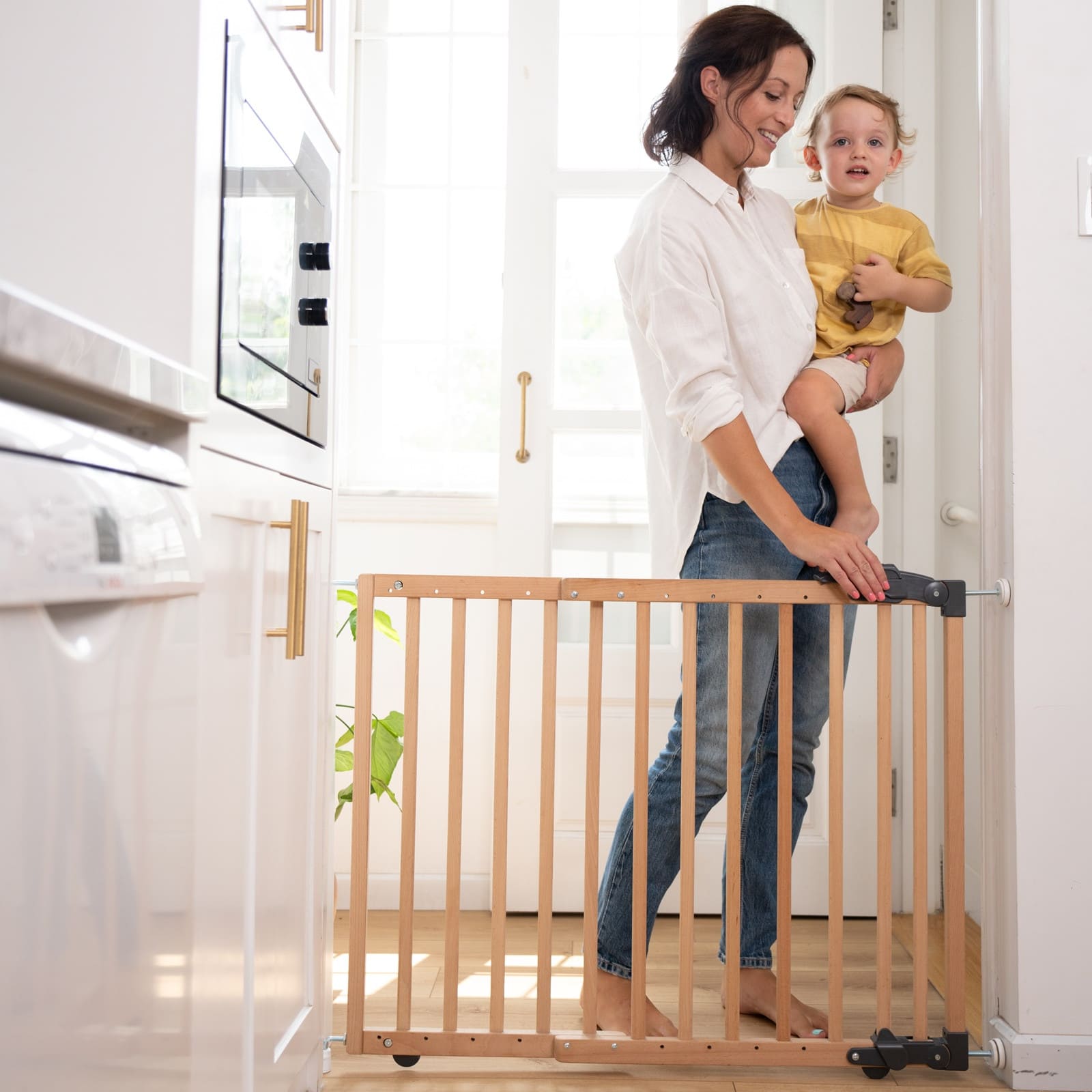 Dank zweier Montageoptionen passt sich das GEUTHER Türschutzgitter verschiedenen Wohnsituationen an: ob als geklemmte Absperrung oder als bequemes Schwenktürgitter, du entscheidest je nach Bedarf.