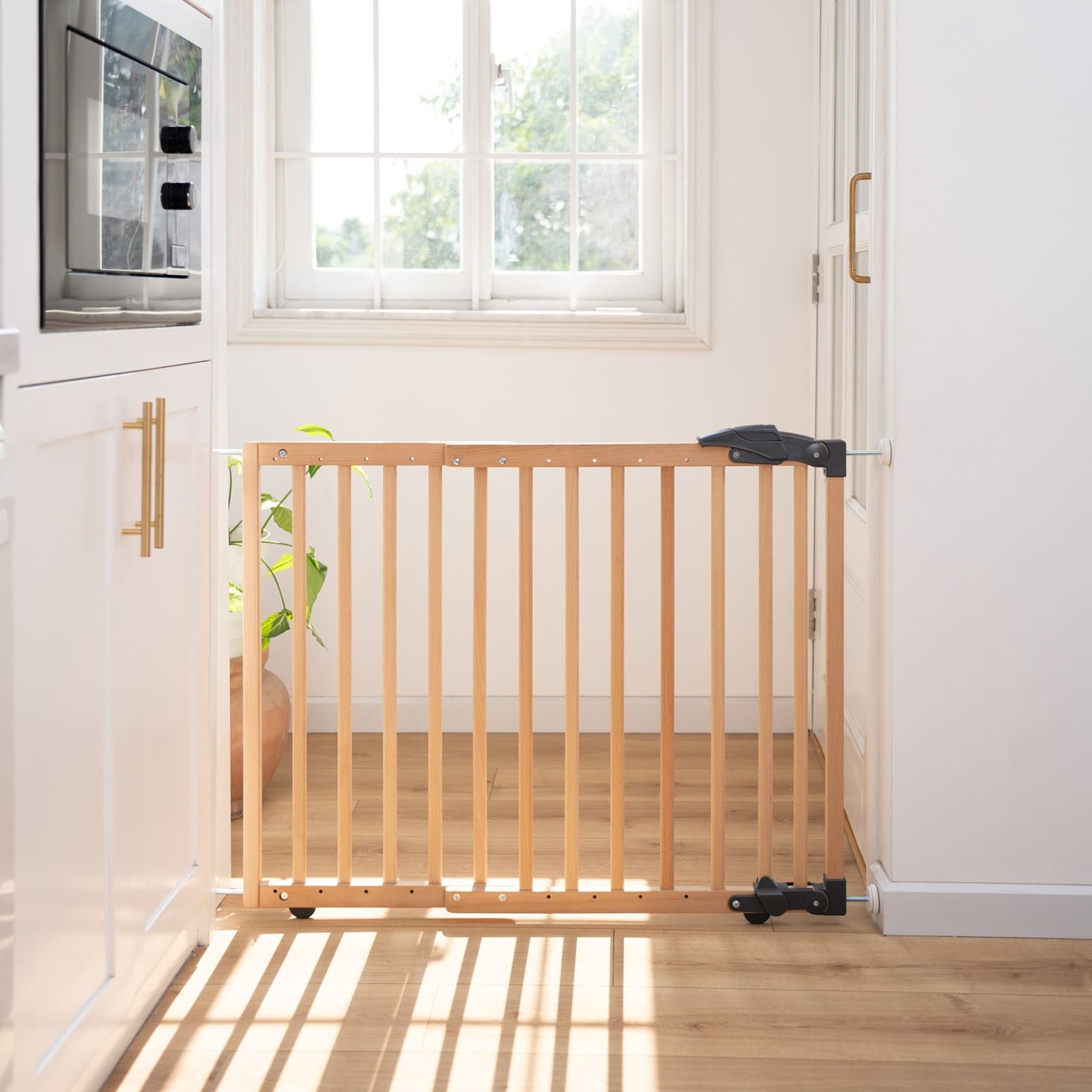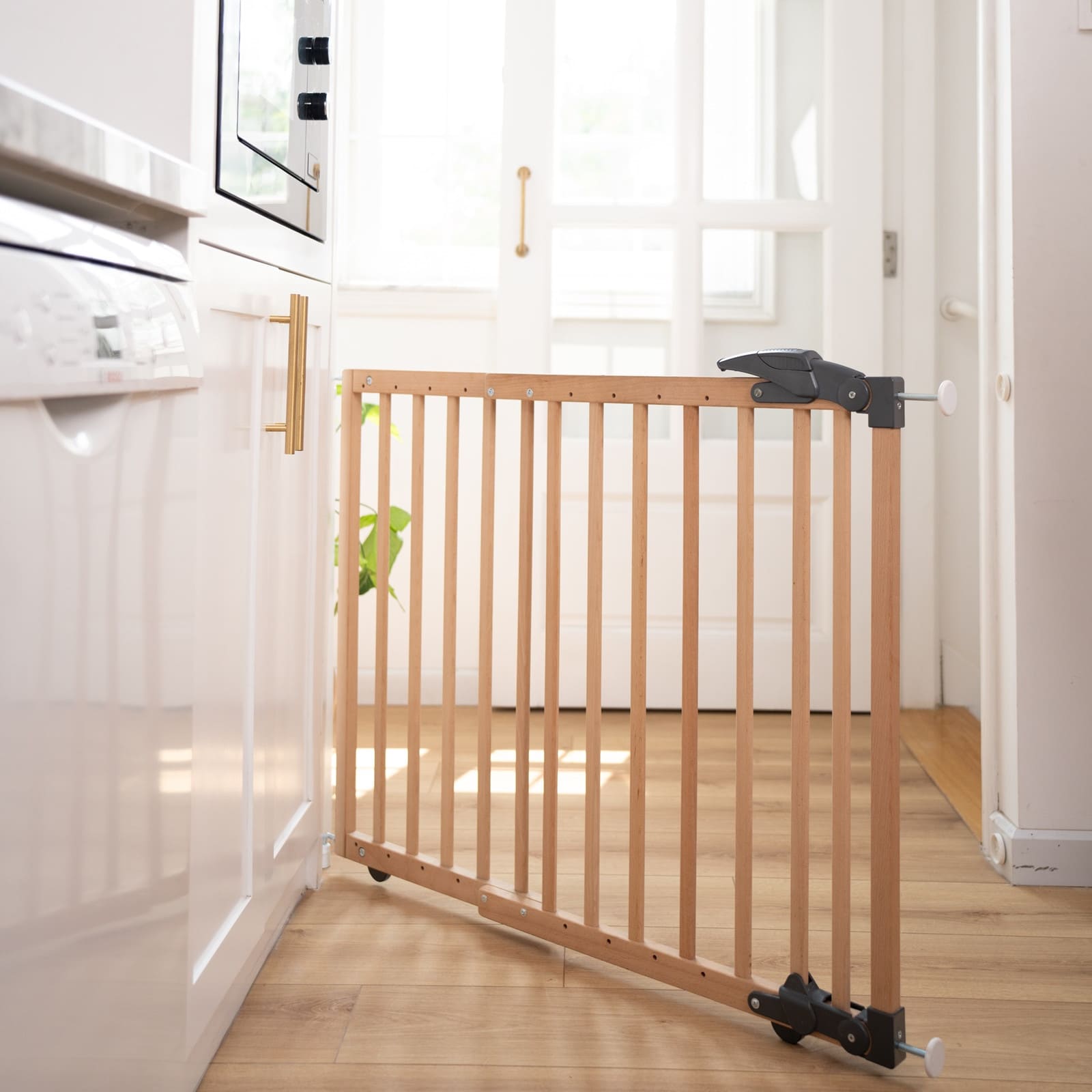 Die Schwenkfunktion erlaubt ein einfaches Öffnen und Schliessen, ohne das Gitter entfernen zu müssen – ideal für Haushalte mit viel Bewegung oder wenn du den Durchgang oft nutzt.