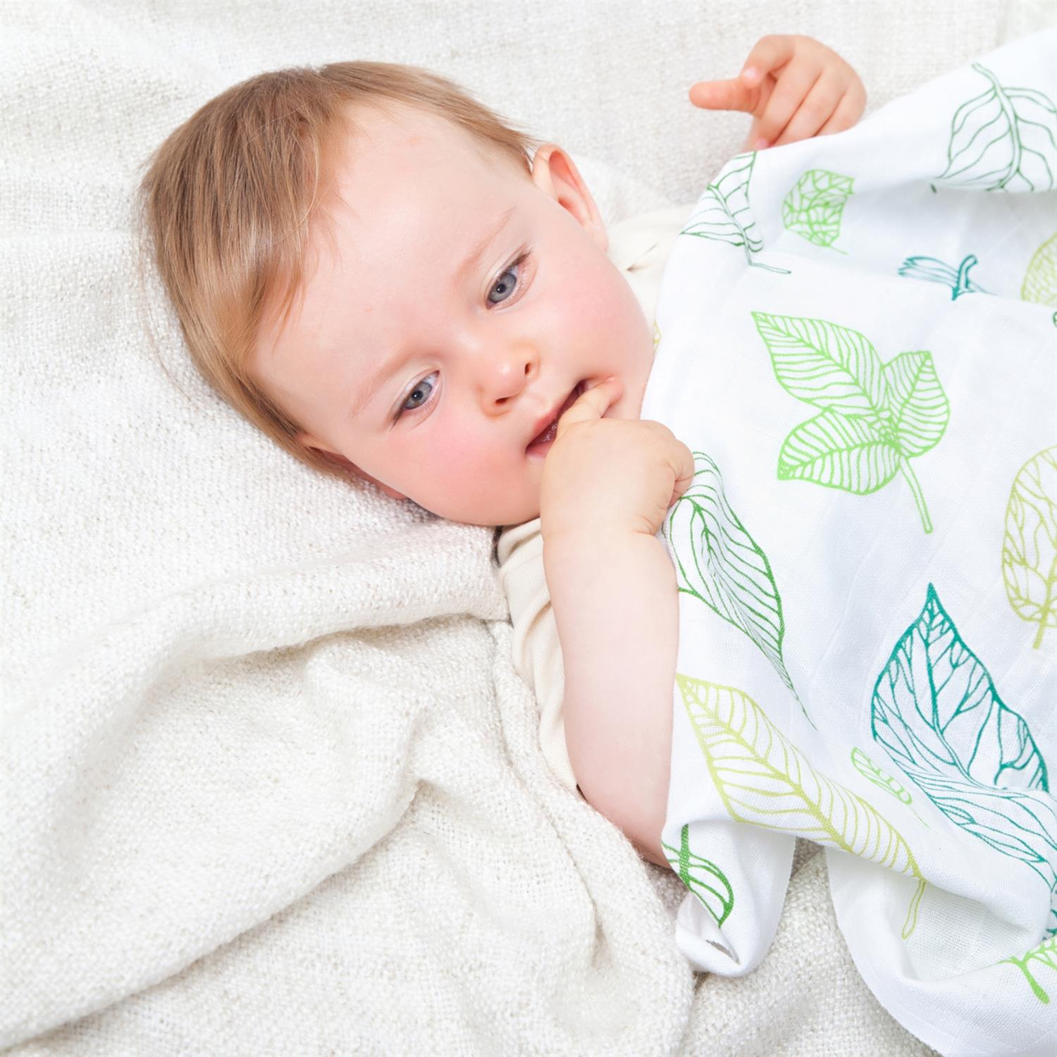 Die GRÜNSPECHT Bio-Mullwindeln Blätter im 2er Pack sind leichte, weiche Tücher aus 100% Bio-Baumwolle, ideal für den Baby-Alltag und vielseitige Anwendungen im Haushalt. Sie kommen in schlichten, natürlichen Designs und sind besonders hautfreundlich für empfindliche Babyhaut.