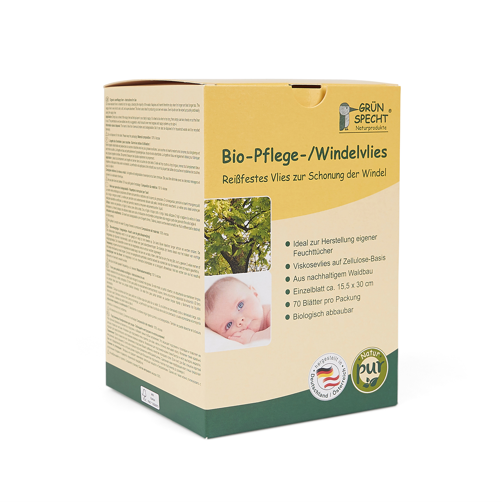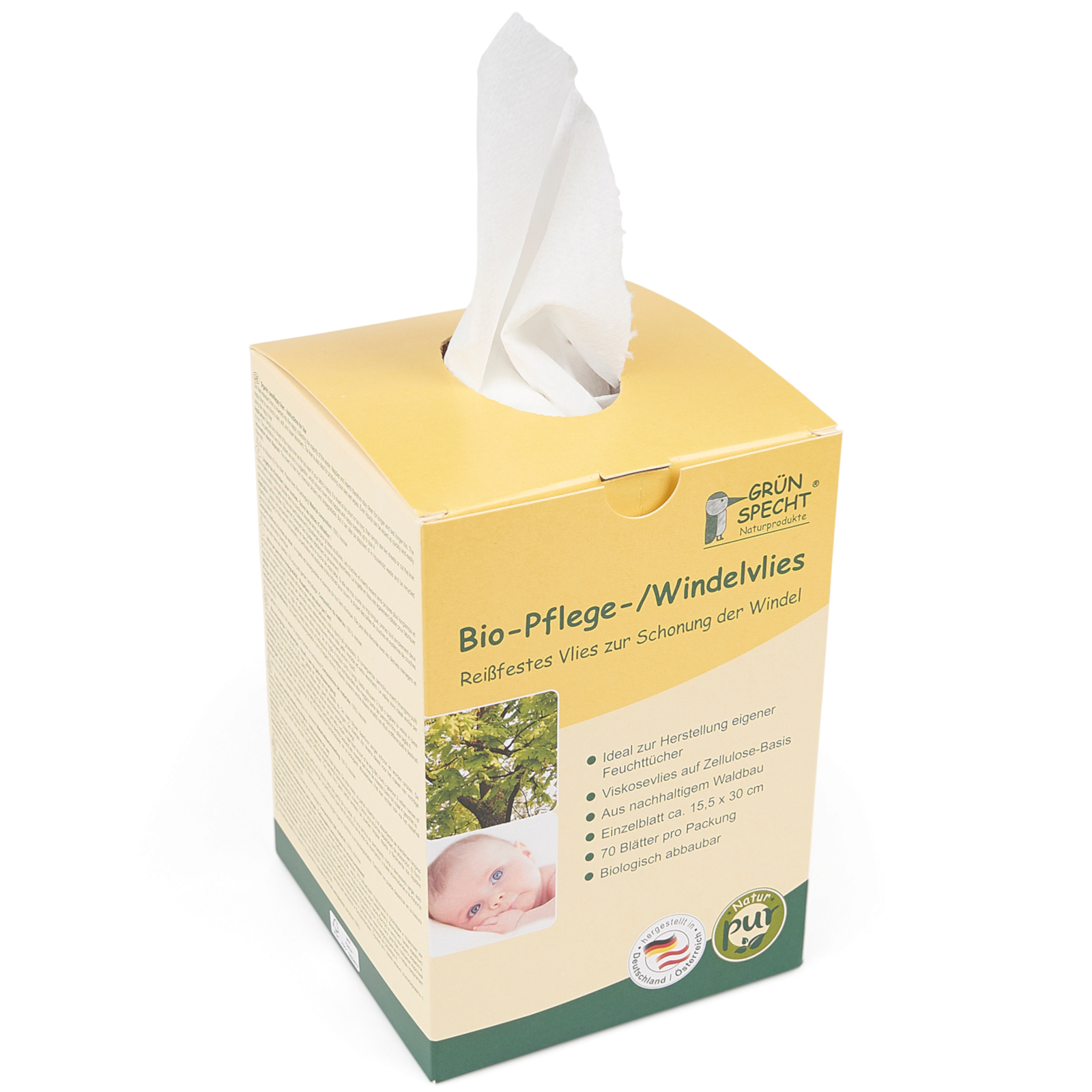 Produktinformationen "GRÜNSPECHT Pflege- und Windelvlies Bio 70 Blatt"