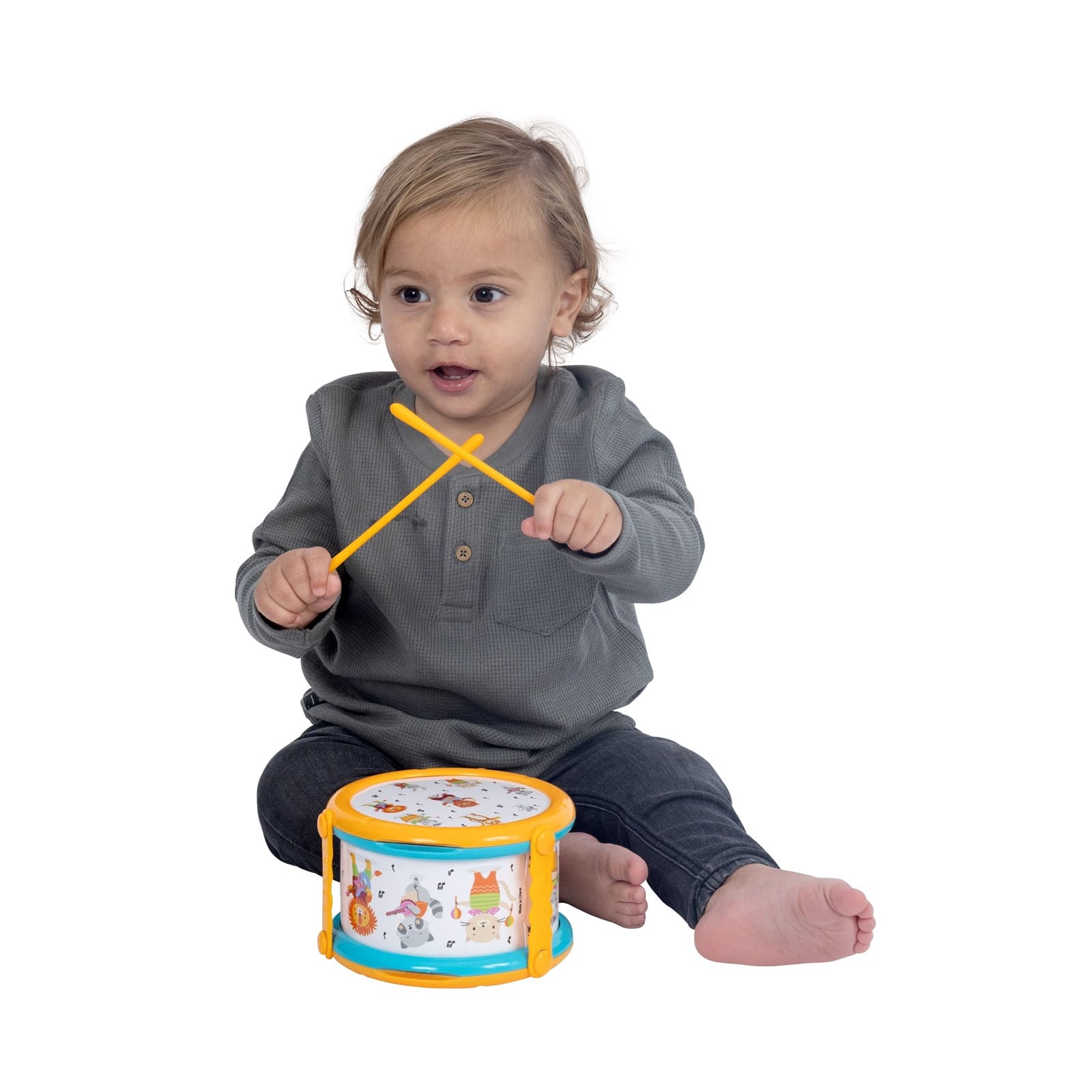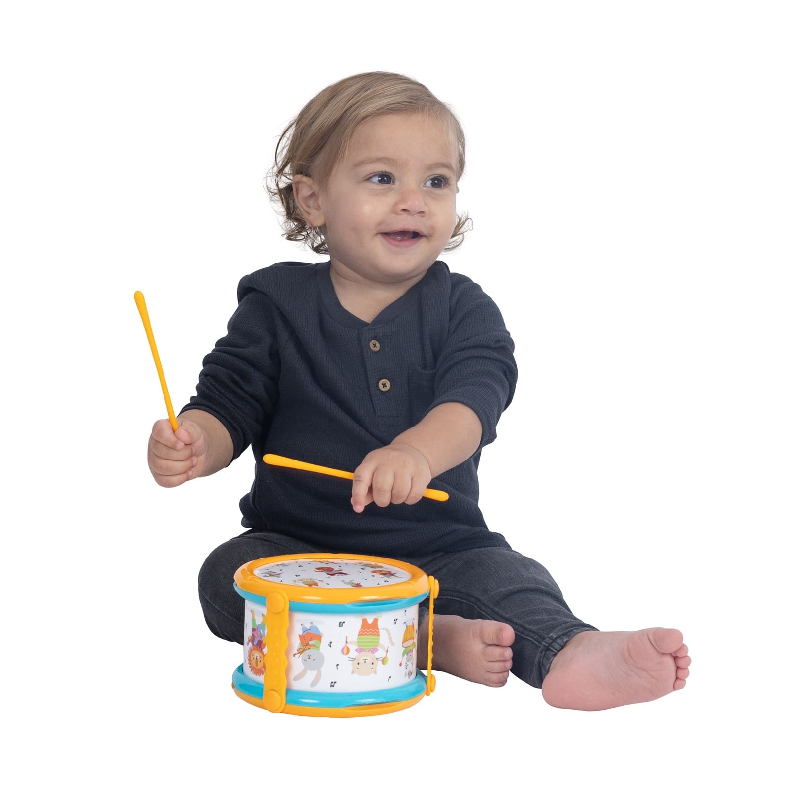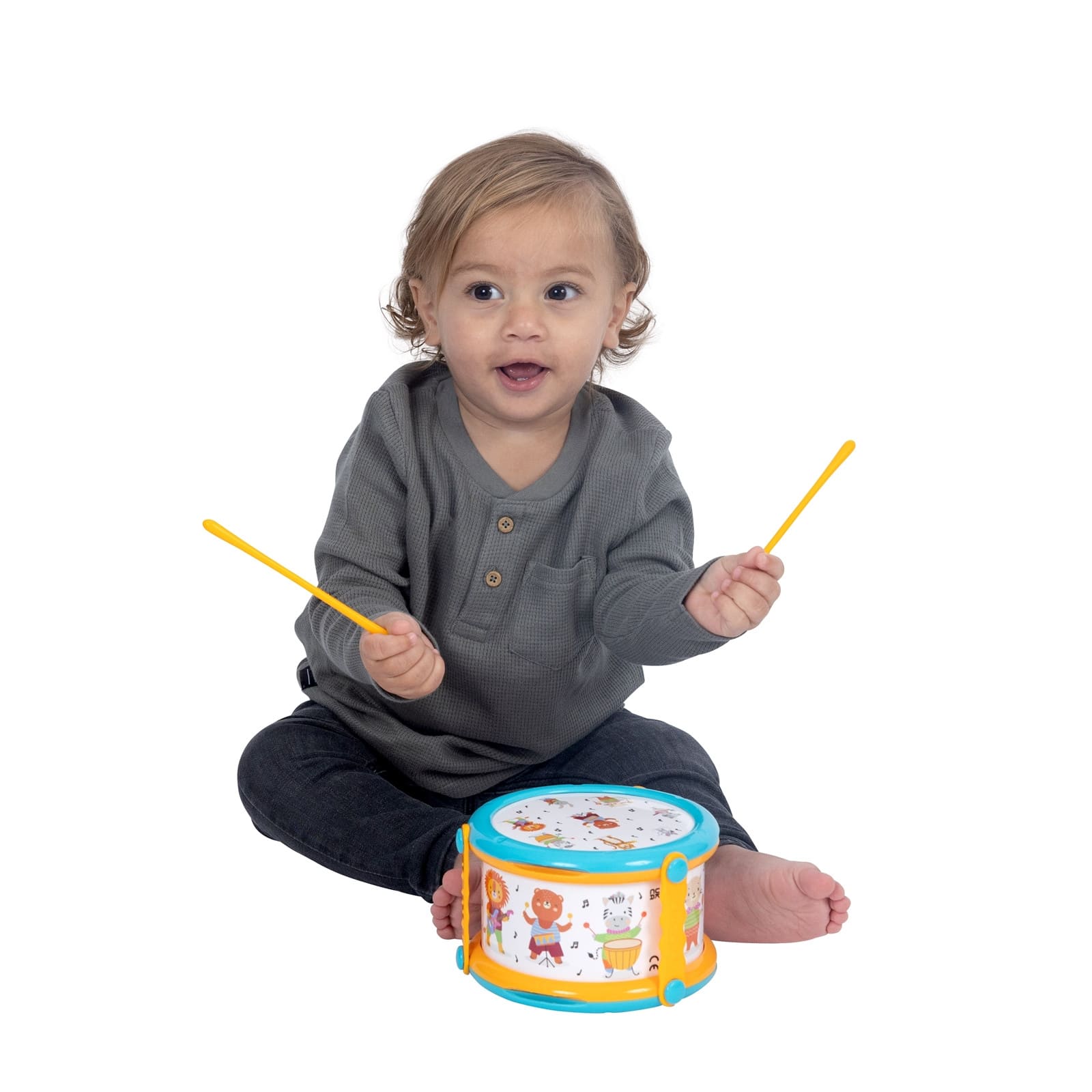 Diese liebevoll gestaltete Trommel ist perfekt für kleine Nachwuchs-Musiker. Dank der leicht zu haltenden Trommelstöcke, die sich praktisch an der Trommel befestigen lassen, ist sie immer einsatzbereit und sorgt für stundenlangen Musikspass. Das Trommeln unterstützt Kinder dabei, ihre Koordination zu verbessern, Kreativität auszuleben und eine natürliche Freude am Rhythmus zu entwickeln. Damit ist sie das ideale erste Instrument für kleine Musiker, die spielerisch ihre Liebe zur Musik entdecken möchten.