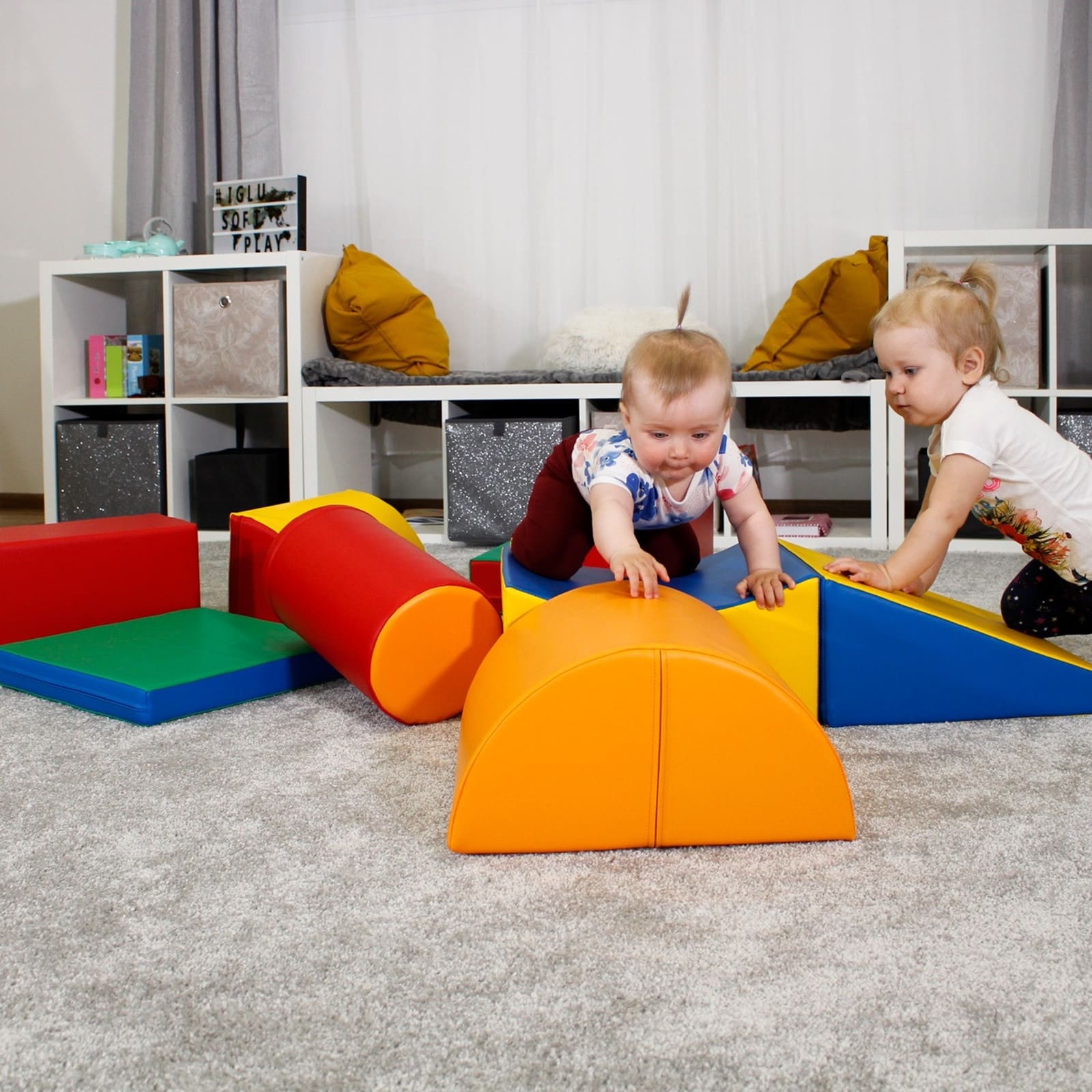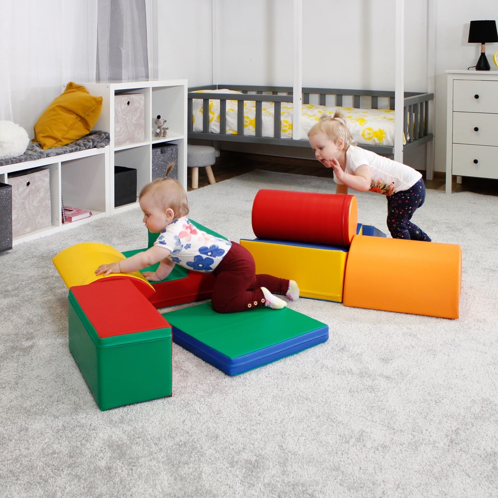Das Soft Play Set ist flexibel einsetzbar: Ob als gemütliche Sitzinsel, als Hindernisparcours im Kinderzimmer oder als Ergänzung zu anderen Spielsachen – es passt sich deinen Bedürfnissen an. Die beiliegende Leiter eröffnet zusätzliche Kletter- und Balanceübungen.