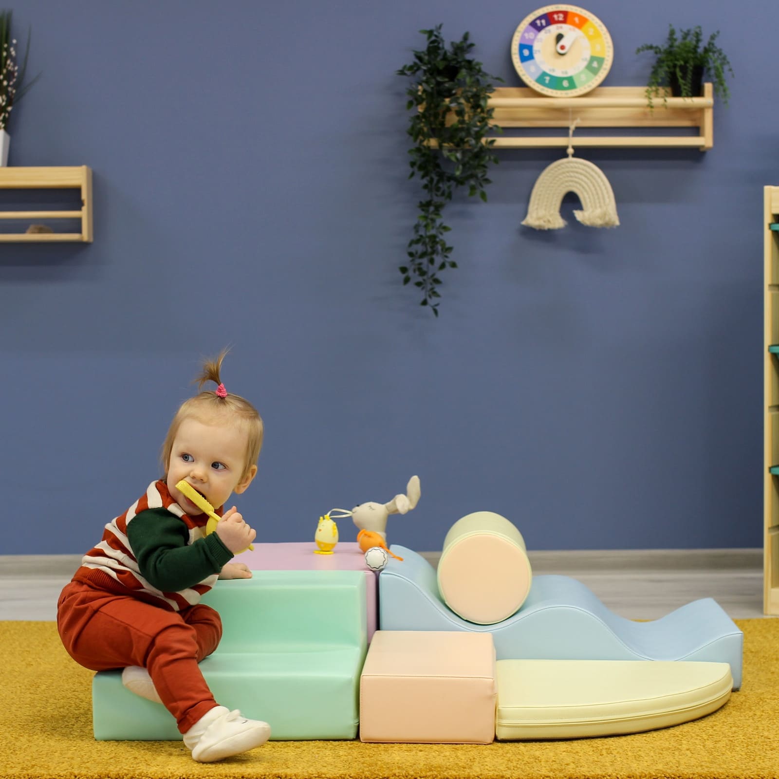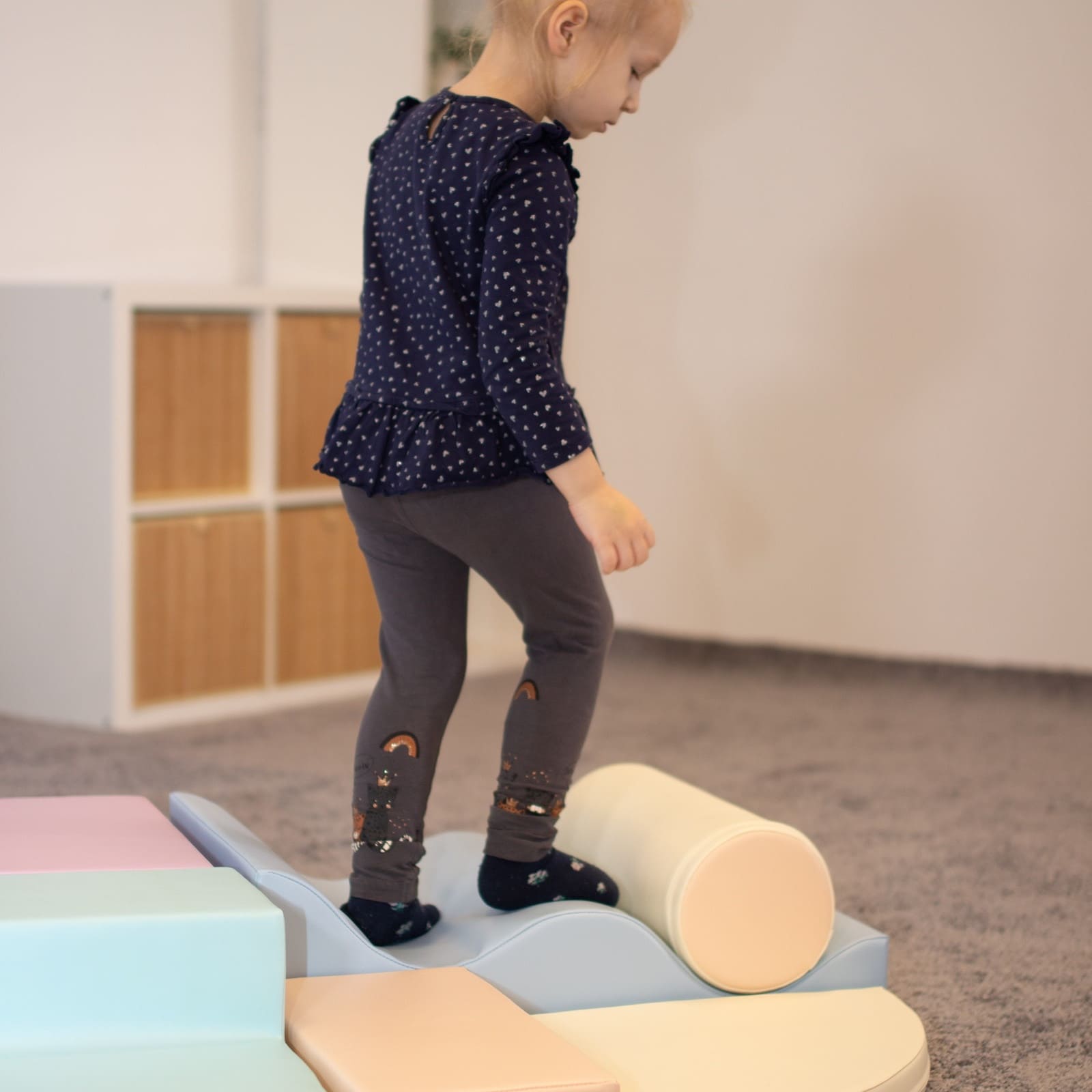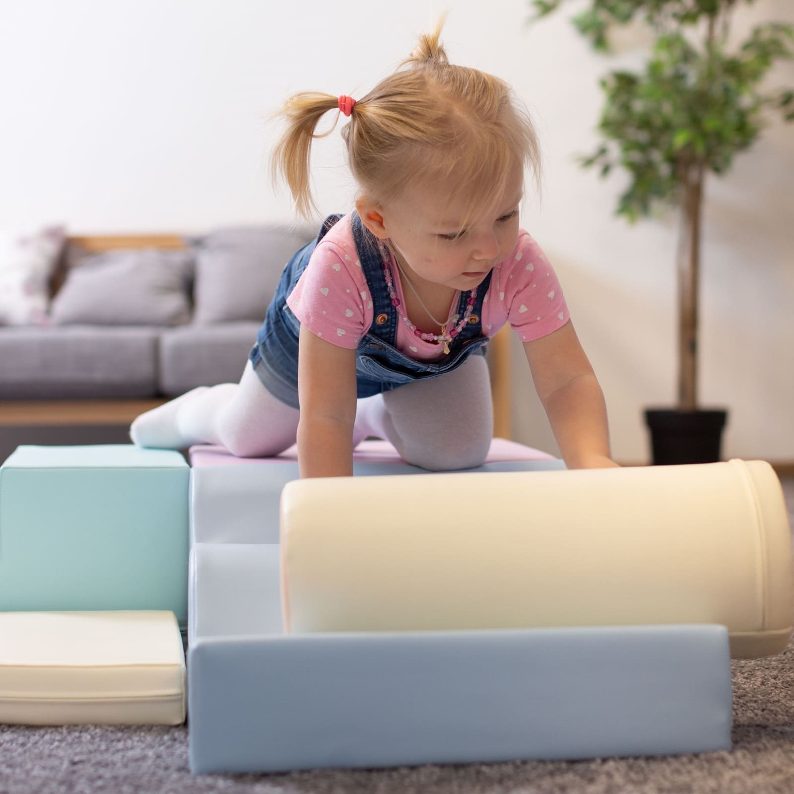 Das IGLU Soft Play Set Entdecker wurde speziell für Kleinkinder ab einem Jahr entwickelt und unterstützt spielerisch die grob- und feinmotorische Entwicklung. Verschiedene Formen und Grössen laden zum Greifen, Klettern und Balancieren ein und stärken so Koordination sowie Körperwahrnehmung.