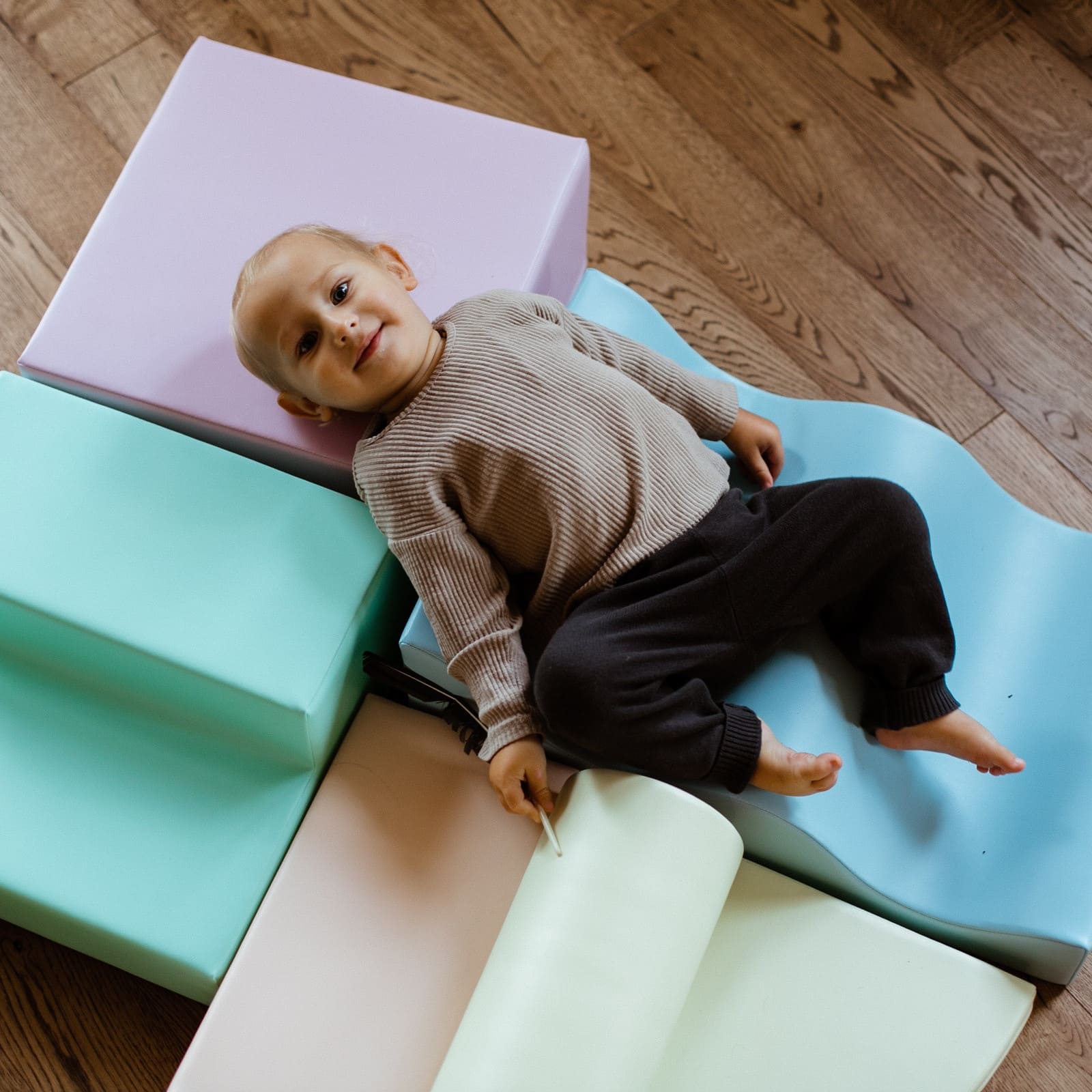 Das IGLU Soft Play Set wächst mit und bleibt vielseitig einsetzbar: Als Hindernisparcours für aktive Spielstunden, als Kletterhilfe oder als gemütliche Sitz- und Liegefläche. So begleitet das Set Kinder in verschiedenen Entwicklungsphasen.