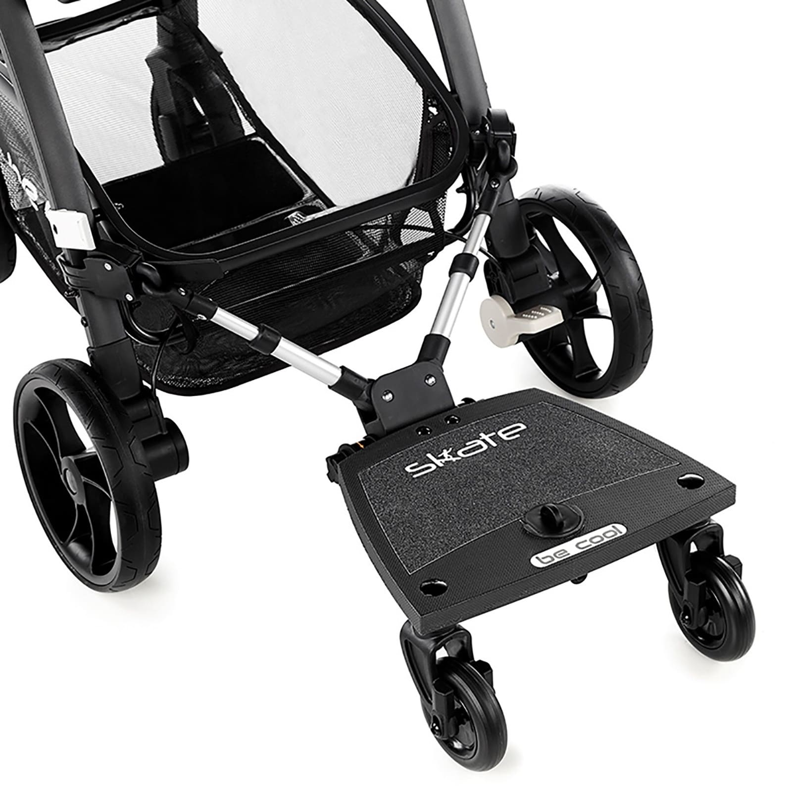 Die Verbindung zum Kinderwagen ist solide ausgelegt, damit das Brett nicht wackelt oder sich verschiebt. Dadurch kann dein Kind entspannt stehen bleiben und ihr geniesst gemeinsam längere Spaziergänge.