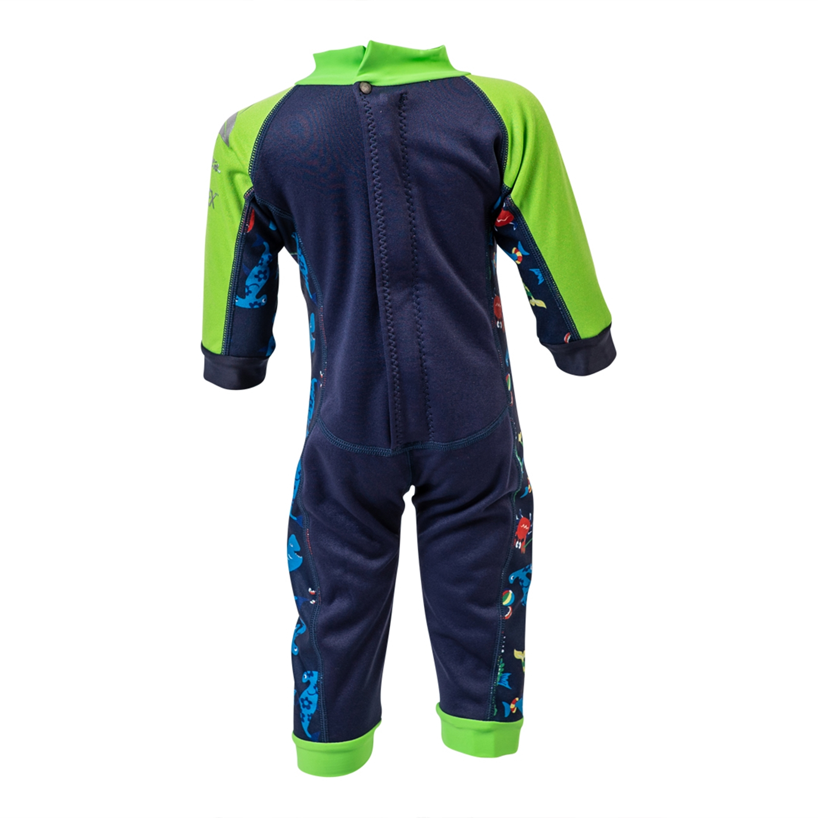 Der Anzug hält dank der isolierenden Sandwich-Fuellung die Körperwärme auch in kuehlerem Wasser und sorgt so fuer entspanntes Spielen im Schwimmbad, am Strand oder im Garten.