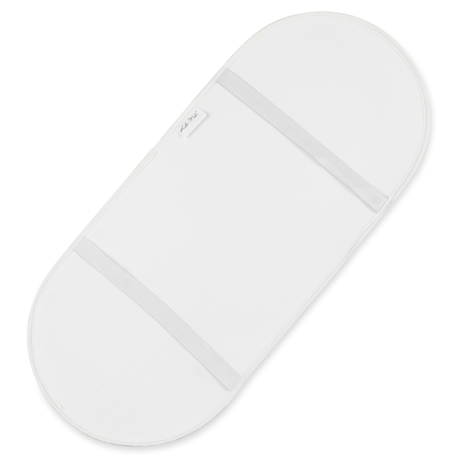 Der Topper lässt sich dank elastischer Bänder einfach und sicher an der Matratze befestigen; das verhindert Verrutschen und ermöglicht eine unkomplizierte Nutzung im Alltag. Die ovale Form passt besonders gut auf Kinder- und Babybetten.