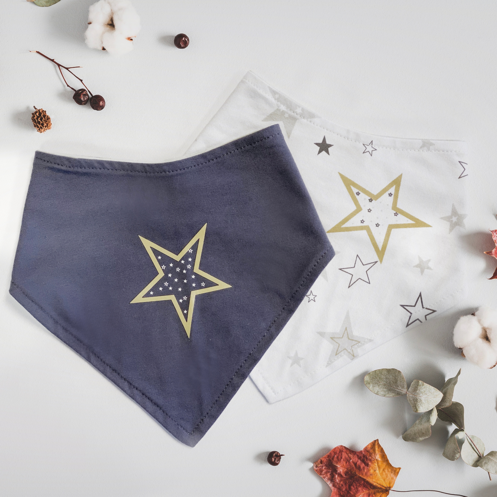 KUSHIES Bandana Lätzchen 2er Pack mit Sternen – praktisch, weich und verstellbar