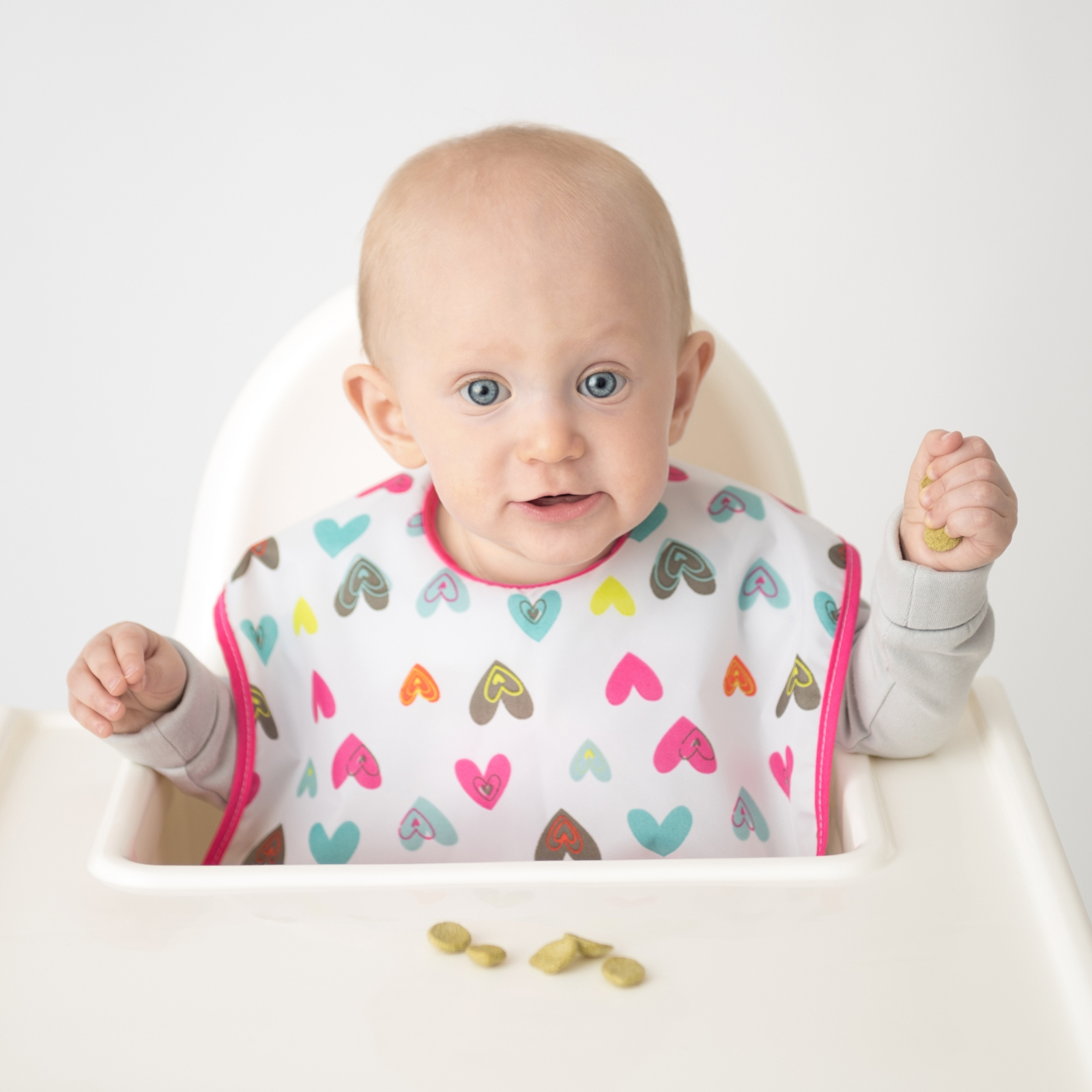 Dieses 2er Pack ist zugeschnitten auf Babys im Alter von 6 bis 12 Monaten und begleitet sie während einer wichtigen Phase des Esslernens. Die Motive „Herz“ und „Chevron“ bringen freundliche Farbakzente und passen zu vielen Alltagslooks.