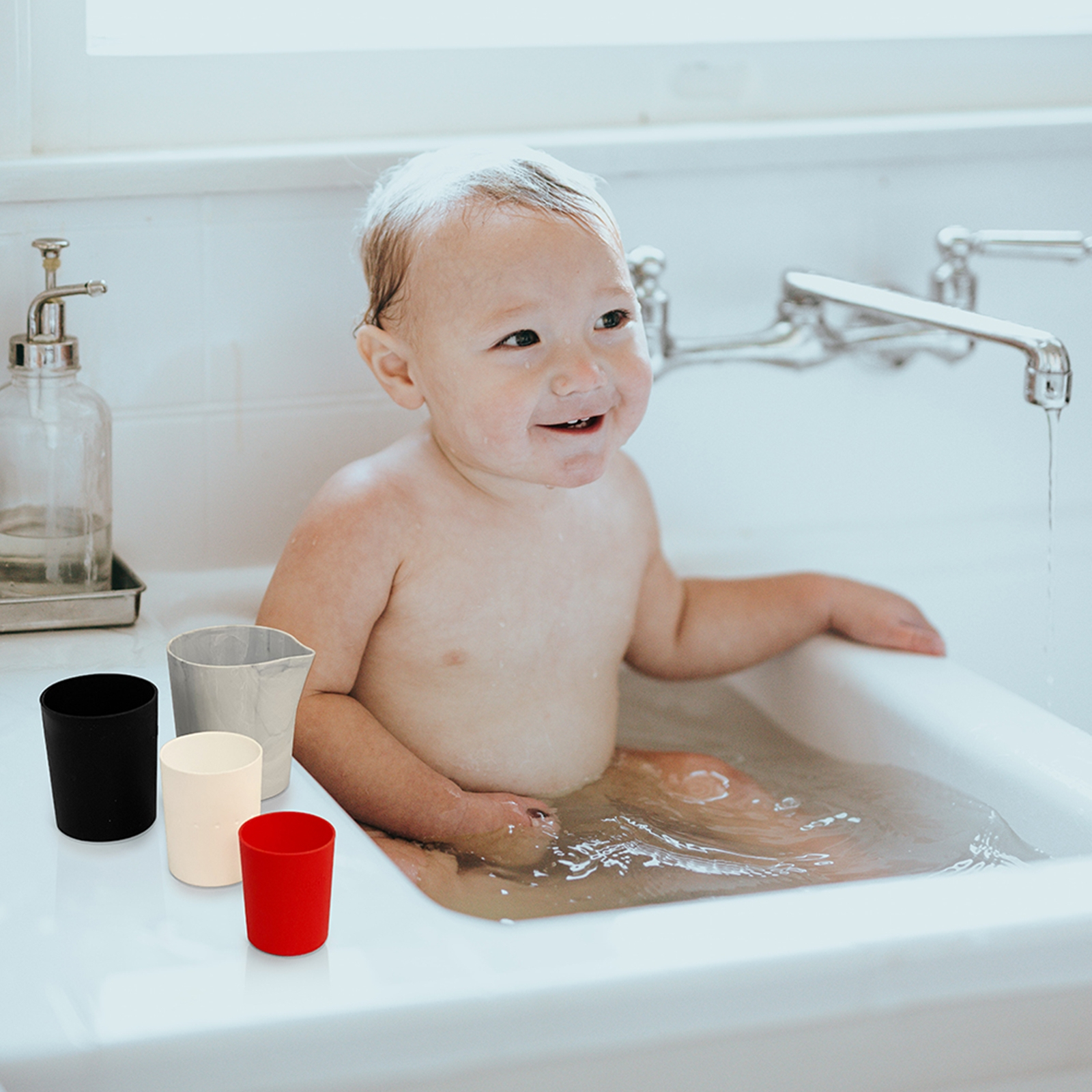 Die Becher sind so konzipiert, dass sie bestens in kleine Kinderhände passen. Das leichte Gewicht und die unterschiedlichen Grössen fördern eigenständiges Greifen, Transportieren und Stapeln.
