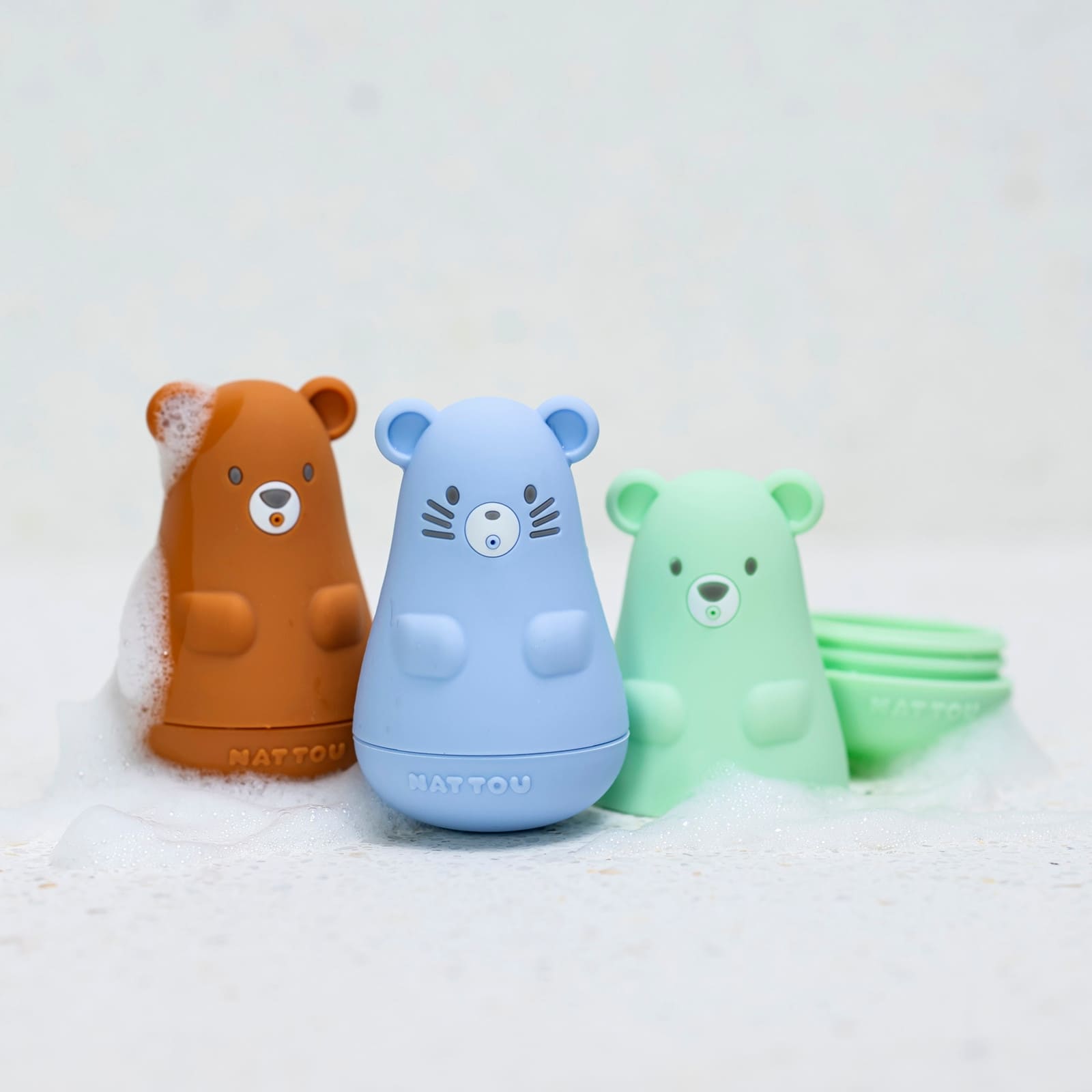 NATTOU Badespielzeug 3er Set – weiche Silikon-Spritzfiguren fürs Bad
