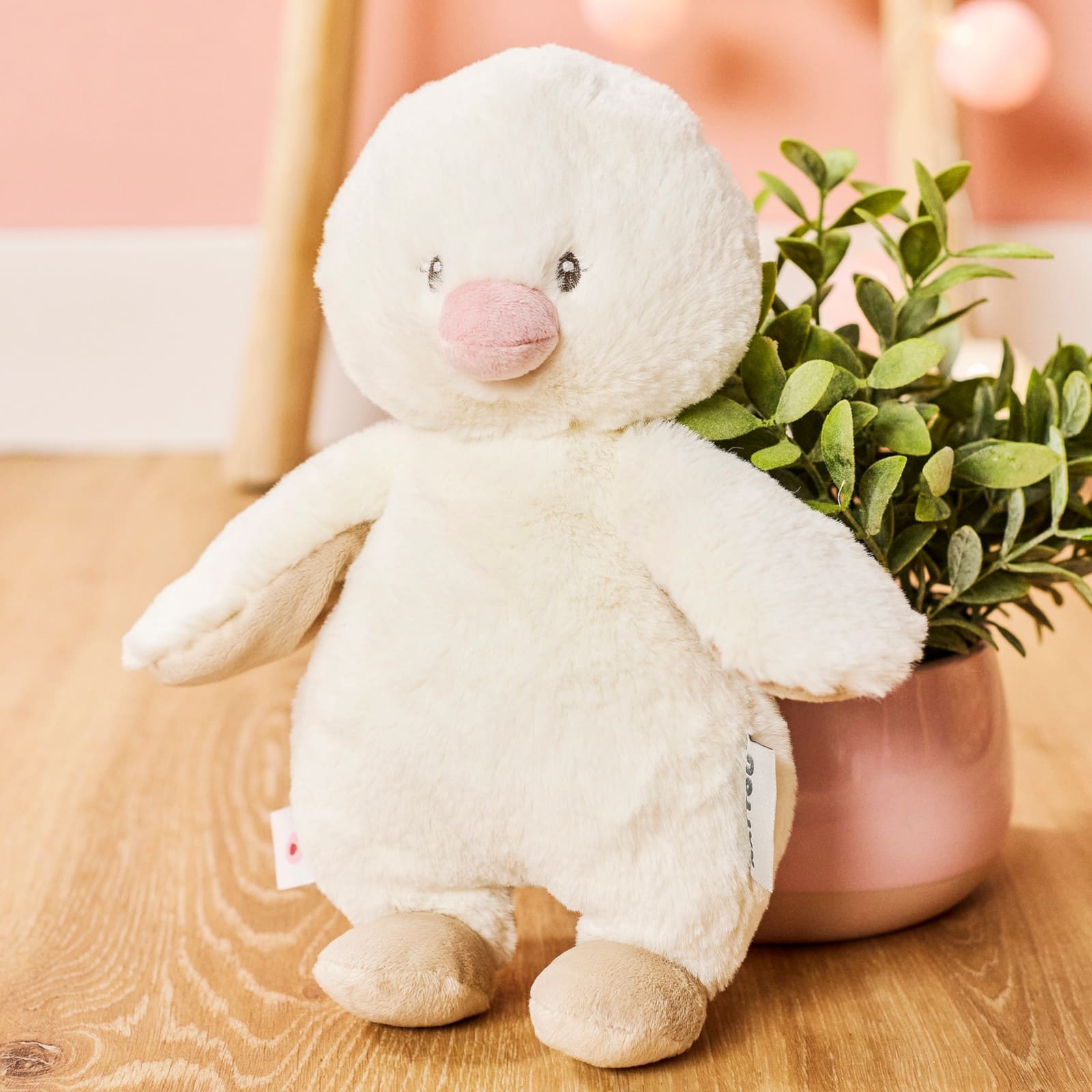 Dieses niedliche Kuschelentchen wird im Handumdrehen zum Lieblingsspielgefährten deines Babys. Mit seinem weichen Plüschfell lädt es zu endlosem Kuscheln ein und vermittelt ein Gefühl von Sicherheit und Geborgenheit. Die Flügelchen, der Schnabel und die Füsschen bieten verschiedene Greifmöglichkeiten, die den Tastsinn und die Feinmotorik deines Kindes spielerisch fördern. Dank seines süssen Aussehens und der sanften Farben passt dieses Entchen perfekt ins Kinderzimmer. Ideal für fröhliche Abenteuer am Tag und kuschelige Momente vor dem Schlafengehen, ein entzückender Freund, der stets Trost und Freude schenkt.