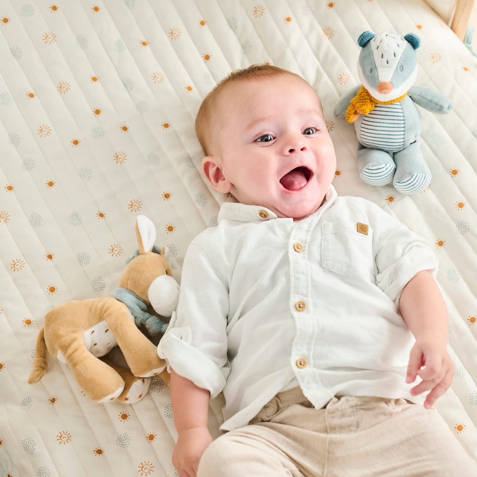 Felix der Dachs von NATTOU ist aus besonders weichem, hochwertigem Material gefertigt, das zum Kuscheln und Schmusen einlädt. Die sanften Farben und das detailreiche, kindgerechte Design wecken die Neugierde und machen Felix schnell zum vertrauten Spielgefährten.