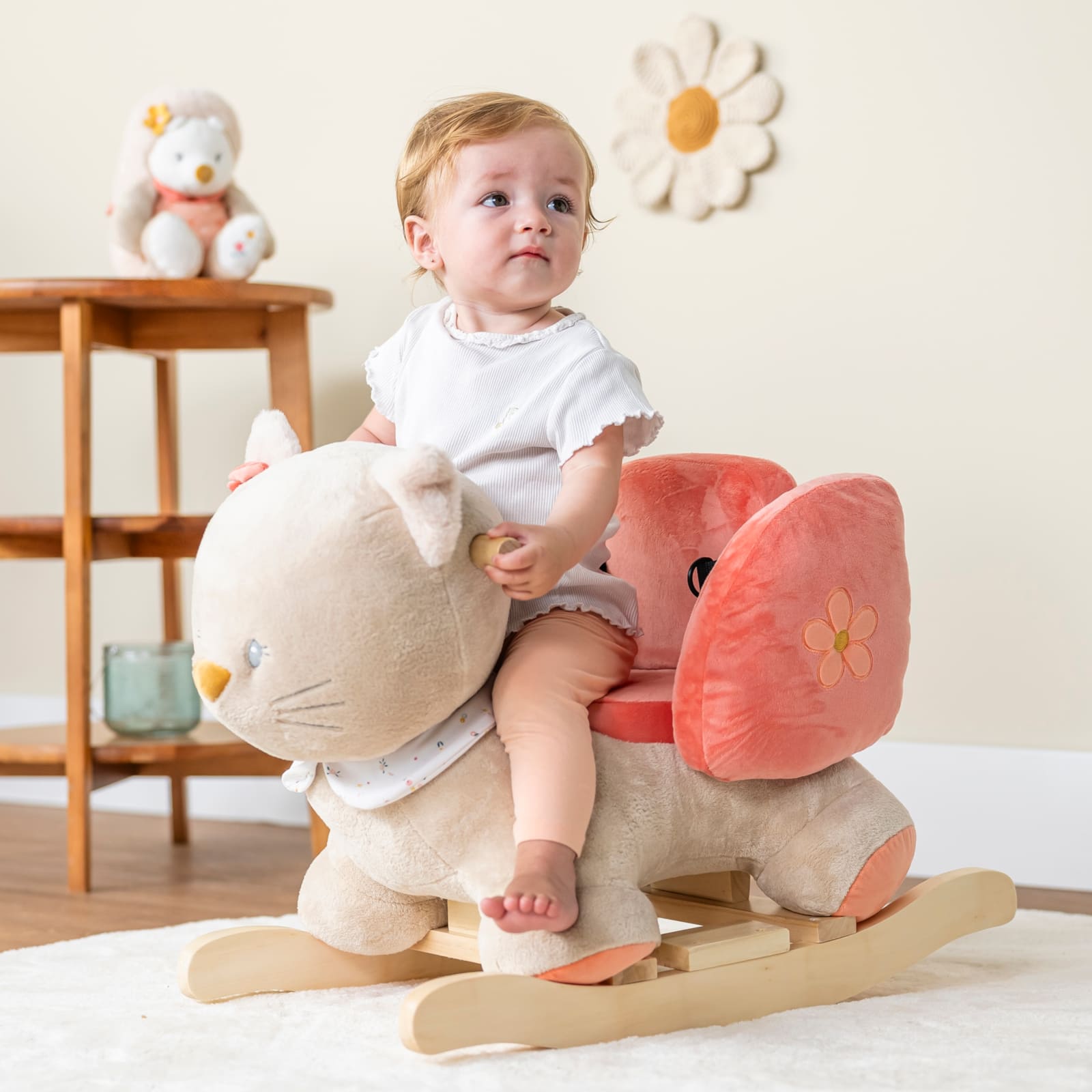 Das Schaukeltier Lana die Katze verbindet ein freundliches Design mit besonders weicher Haptik. Der Körper ist aus kuscheligem Stoff gefertigt und lädt zum Anschmiegen und Spielen ein, sodass es schnell zum geliebten Begleiter im Kinderzimmer wird.