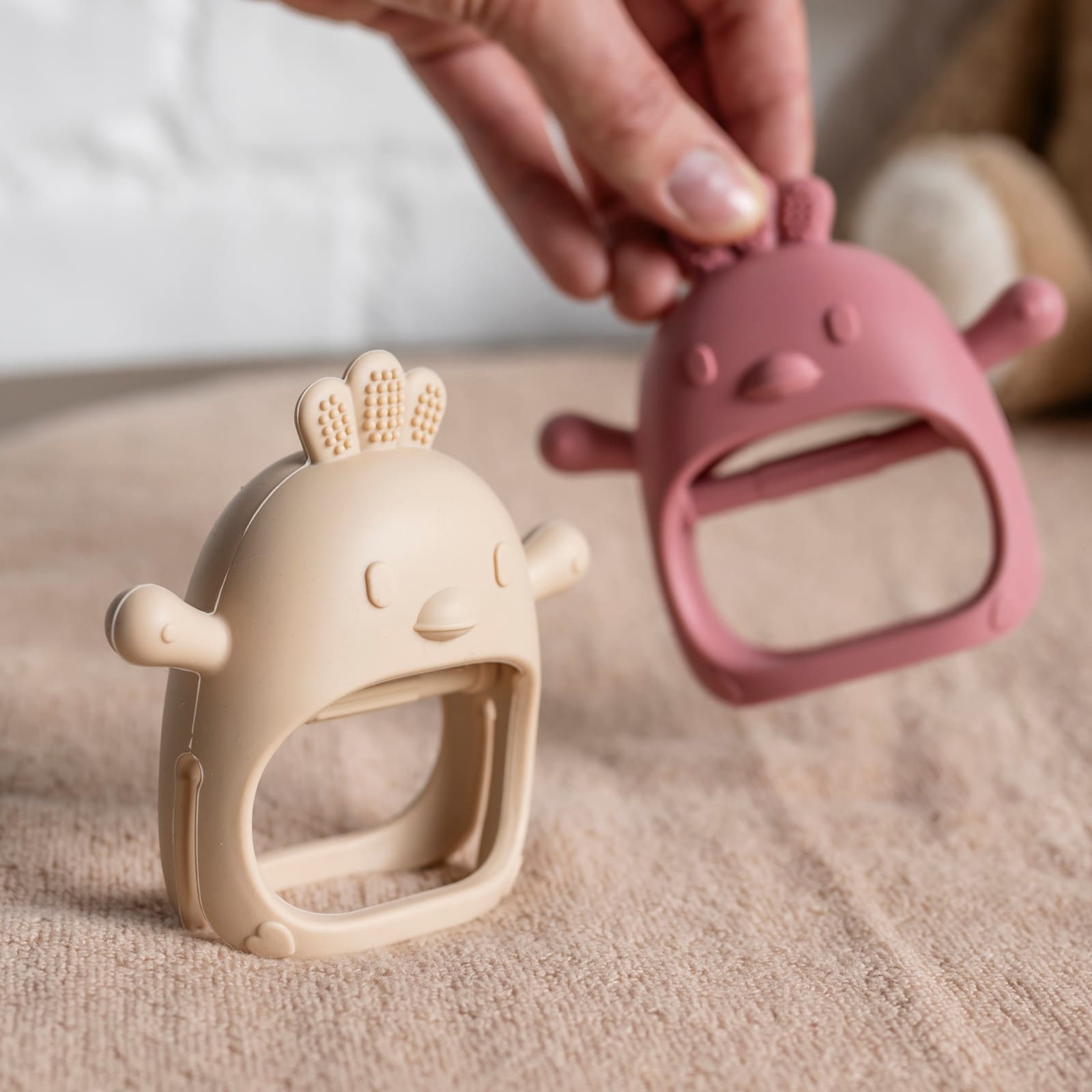 Verschiedene Reliefs und taktile Muster laden zum Fühlen und Entdecken ein. Diese kleinen Oberflächenreize unterstützen die Sinneswahrnehmung und beschäftigen die Kleinen während des Zahnens.