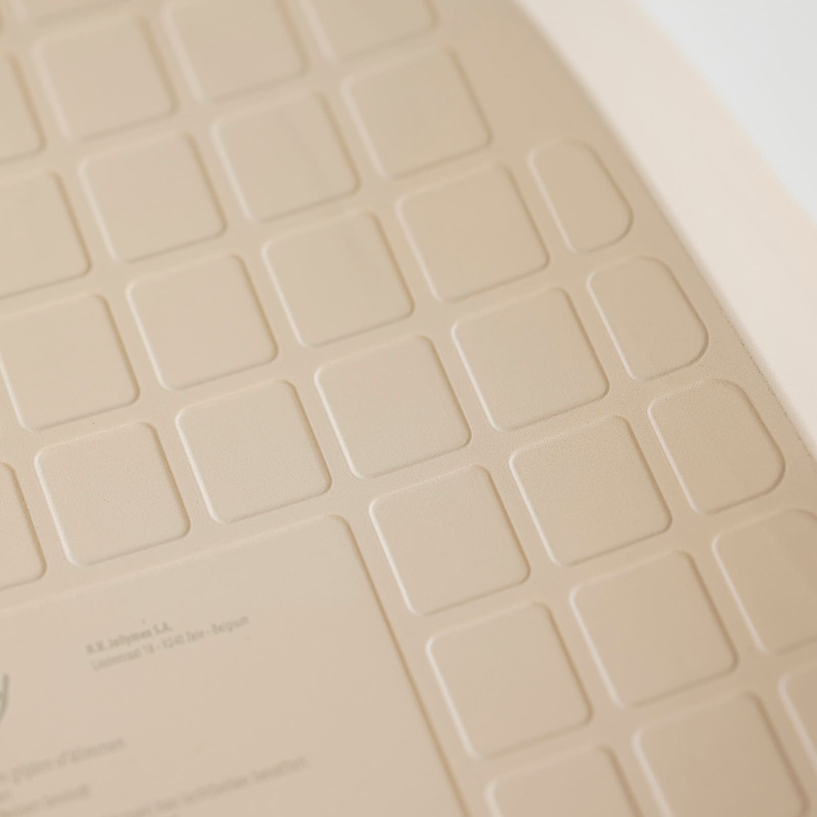 Das dezente Beige passt sich unterschiedlichen Einrichtungsstilen an und wirkt unaufdringlich im Babyzimmer oder unterwegs. Die Kombination aus Form und Funktion macht die Matte zu einem stilvollen, aber praktischen Accessoire für junge Familien.