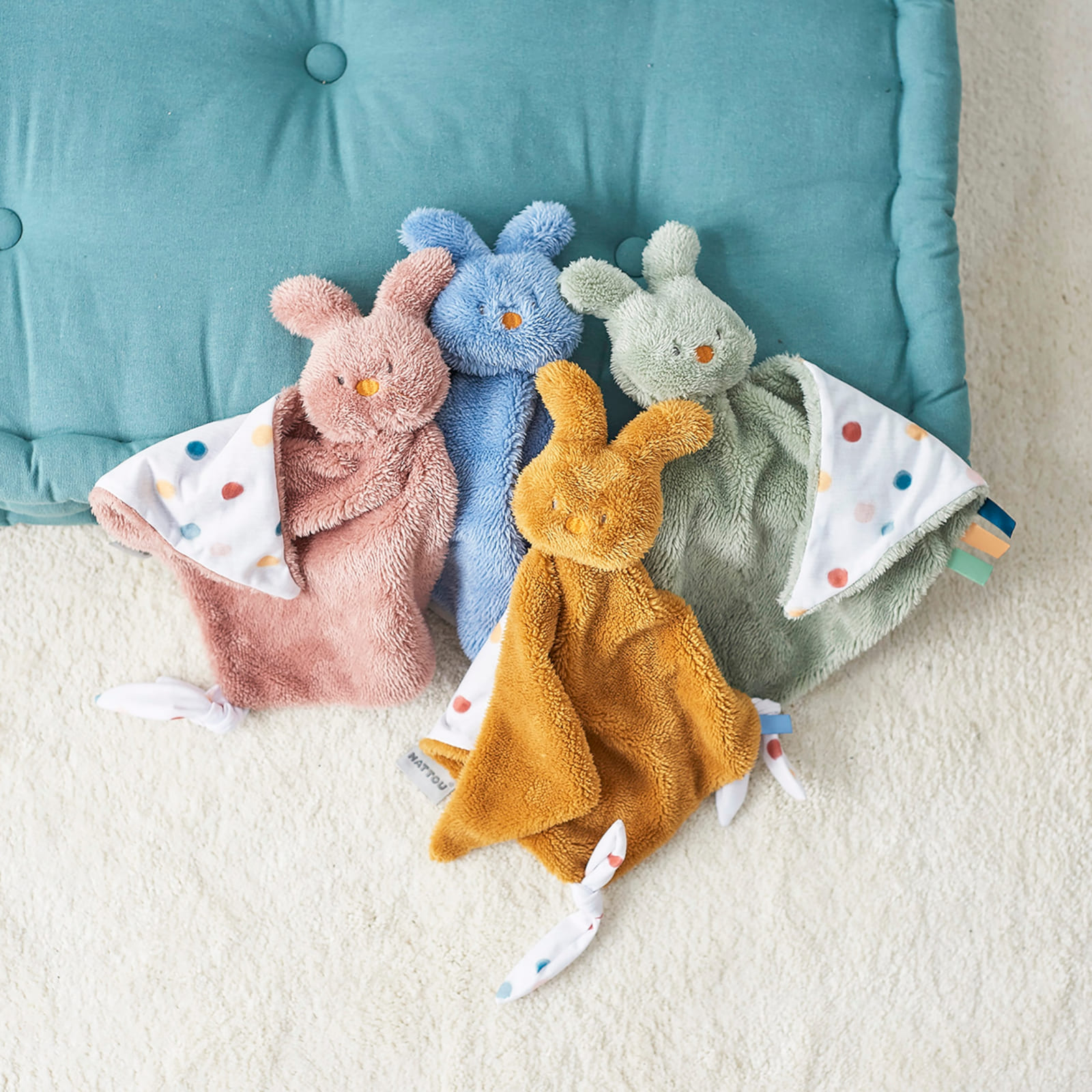 Das NATTOU Tipidou Kuscheltuch Hase in frischem Grün ist ein liebevoll gestalteter Begleiter, der deinem Baby Geborgenheit und Trost schenkt. Durch das weiche Material eignet es sich hervorragend zum Schmusen und Beruhigen – ob beim Einschlafen, unterwegs oder im Alltag.