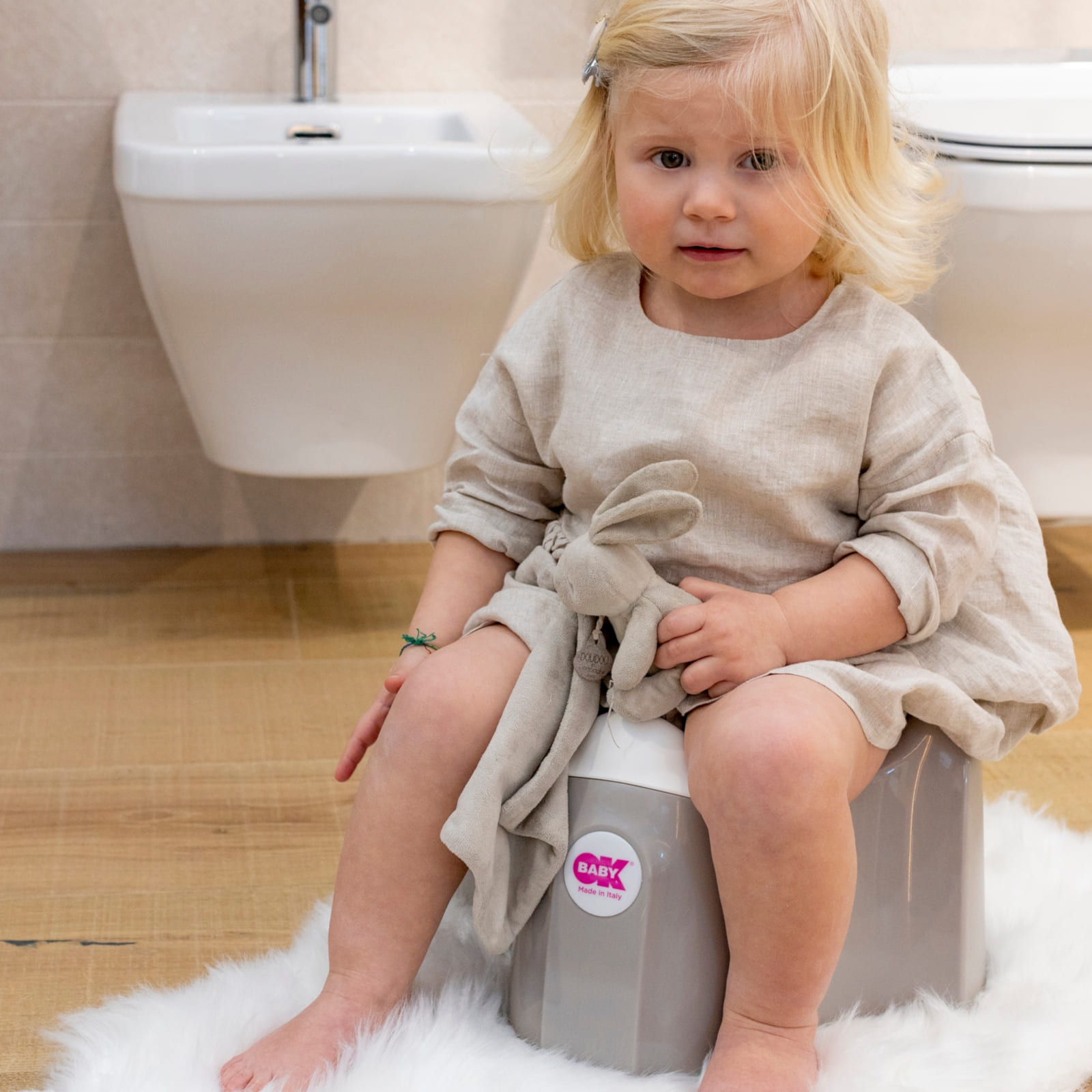 Leicht und handlich gebaut, lässt sich das Töpfchen sowohl zuhause als auch unterwegs nutzen. Die schlichte, elegante Optik in Grau passt zu verschiedensten Wohnstilen und bleibt unauffällig im Badezimmer oder Kinderzimmer.