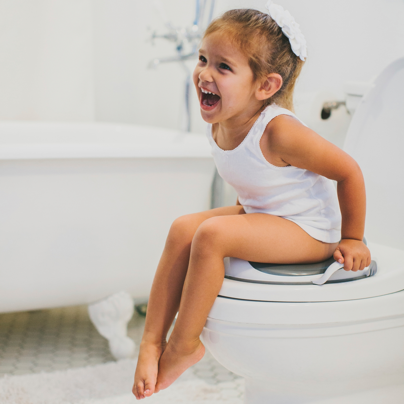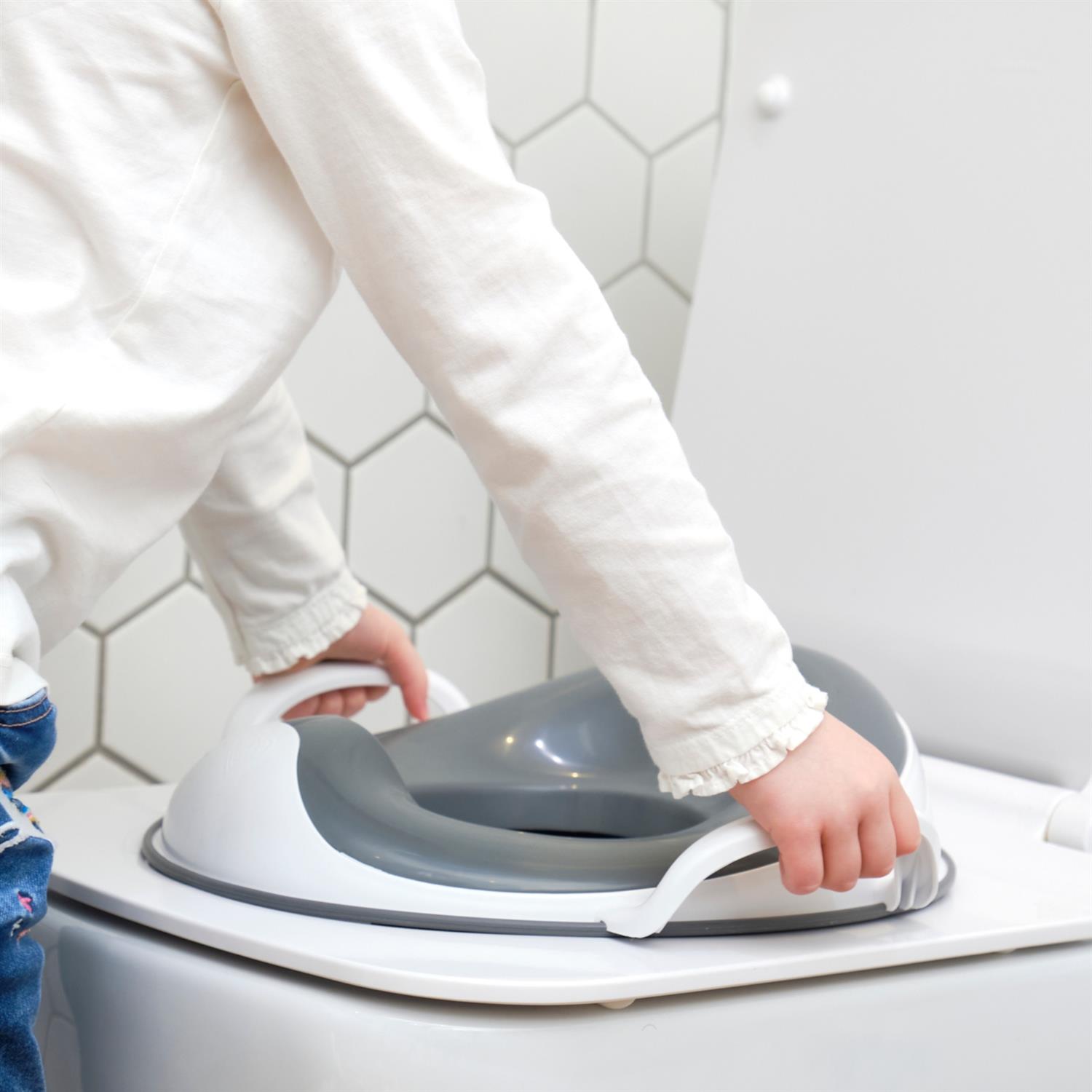 Dank des leichten Gewichts und des Griffs laesst sich der Toilettentrainer einfach platzieren oder verstauen. So bleibt das Badezimmer aufgeraumt und flexibel nutzbar.