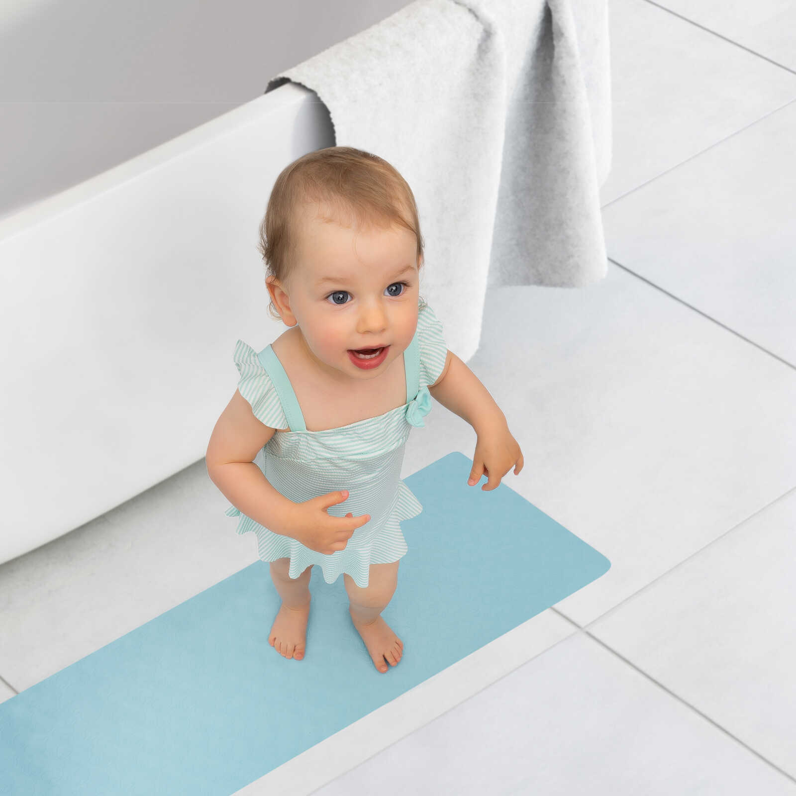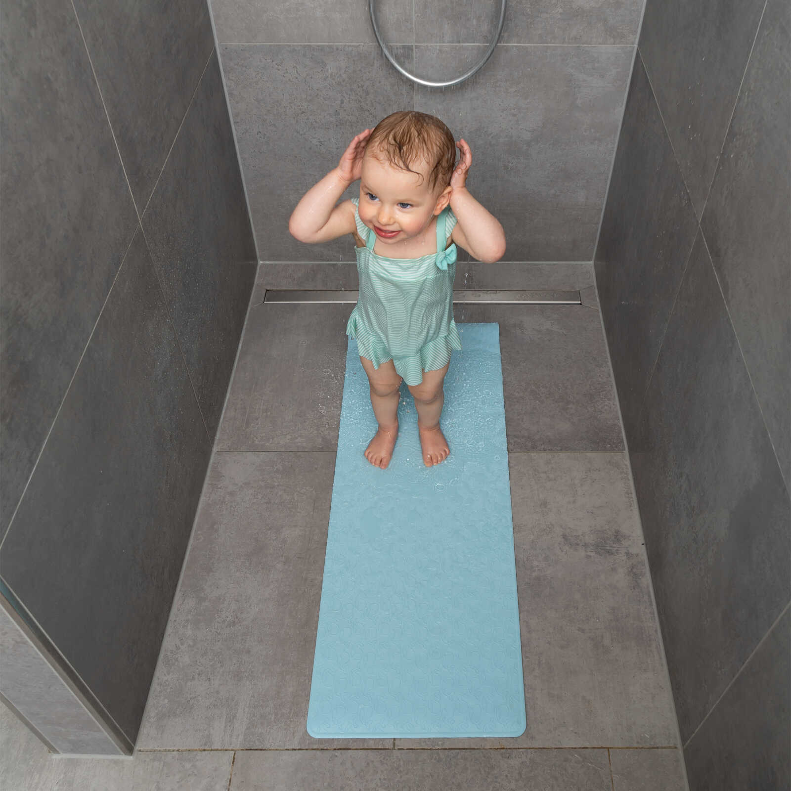 Die strukturierte Oberfläche unterstützt die Rutschfestigkeit auch im nassen Zustand und gibt dir und deinem Kind ein sicheres Gefühl beim Baden.