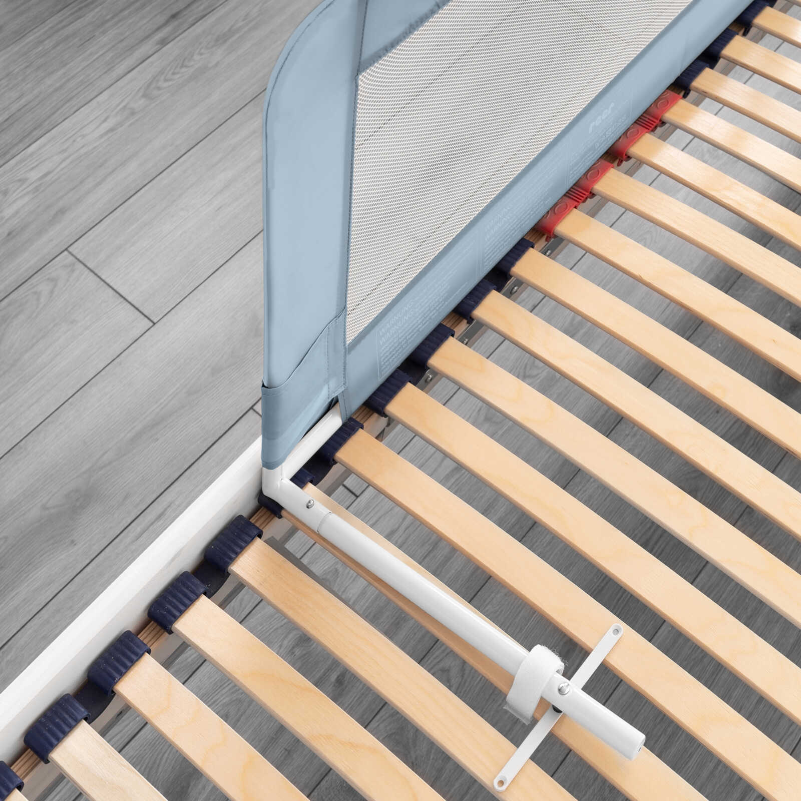 Die Montage gelingt schnell und werkzeugfrei dank des praktischen Stecksystems. Eine Verschraubung am Bett ist nicht zwingend nötig, sodass du das Bettgitter einfach anbringen und wieder entfernen kannst.