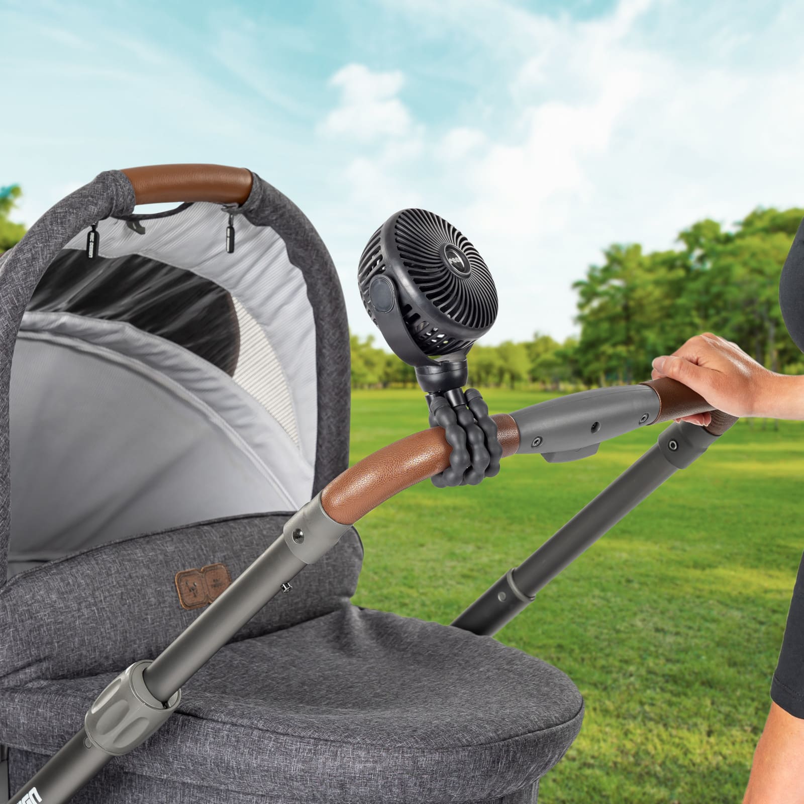 Die biegsame Halterung erlaubt vielseitige Montageoptionen – vom Kinderwagen über das Bettchen bis zum Autositz. Du kannst den Ventilator genau dorthin positionieren, wo er gebraucht wird.