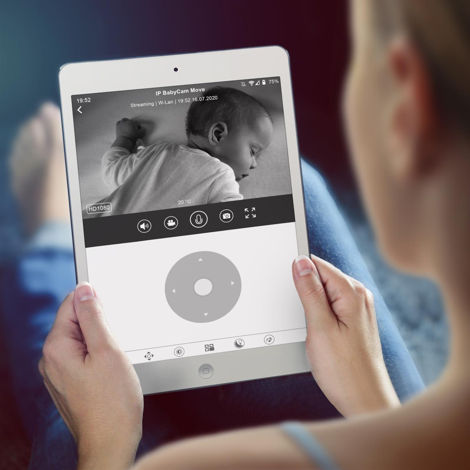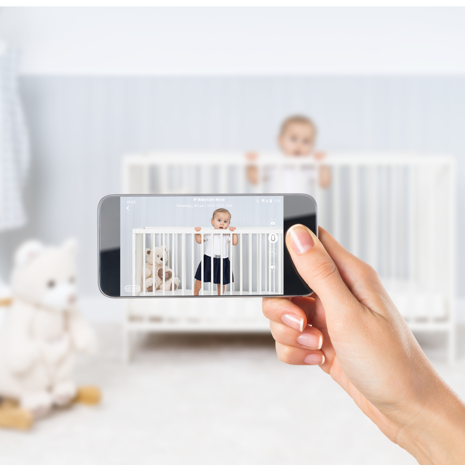 Die REER IP BabyCam Move nutzt digitale IP-Übertragung, sodass du dein Baby jederzeit und von überall aus überwachen kannst. Die Verbindung ist verschlüsselt, wodurch die Übertragung störungsfrei und abhörsicher bleibt — ideal, wenn du ausserhalb des Hauses bist oder mehrere Räume im Blick haben möchtest.
