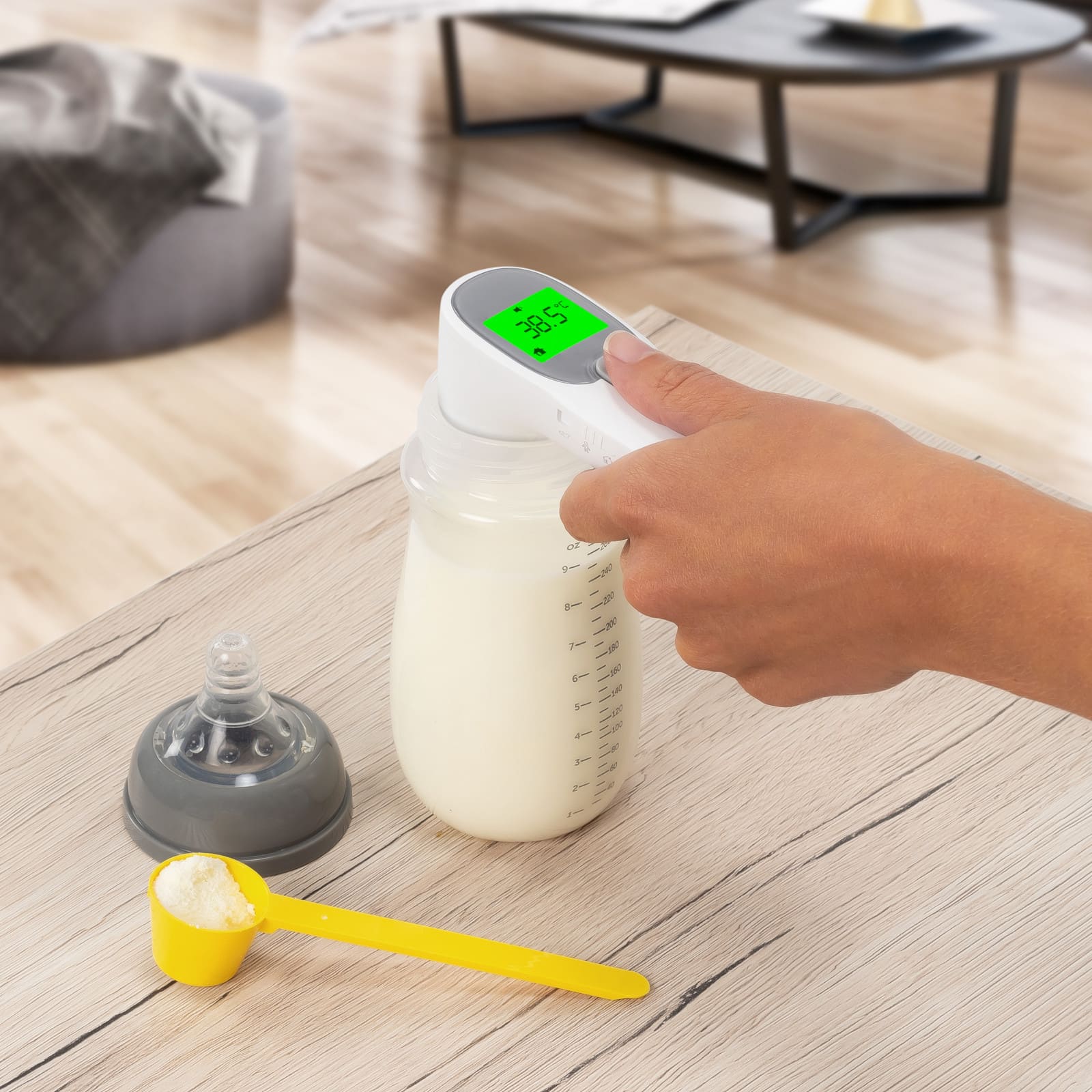 Die Messung erfolgt hygienisch und in wenigen Sekunden, wodurch du rasch zuverlässige Werte erhältst, ohne das Kind zu stören oder Oberflächen reinigen zu müssen.