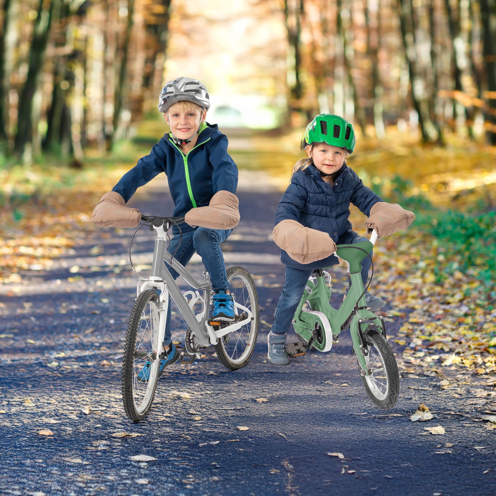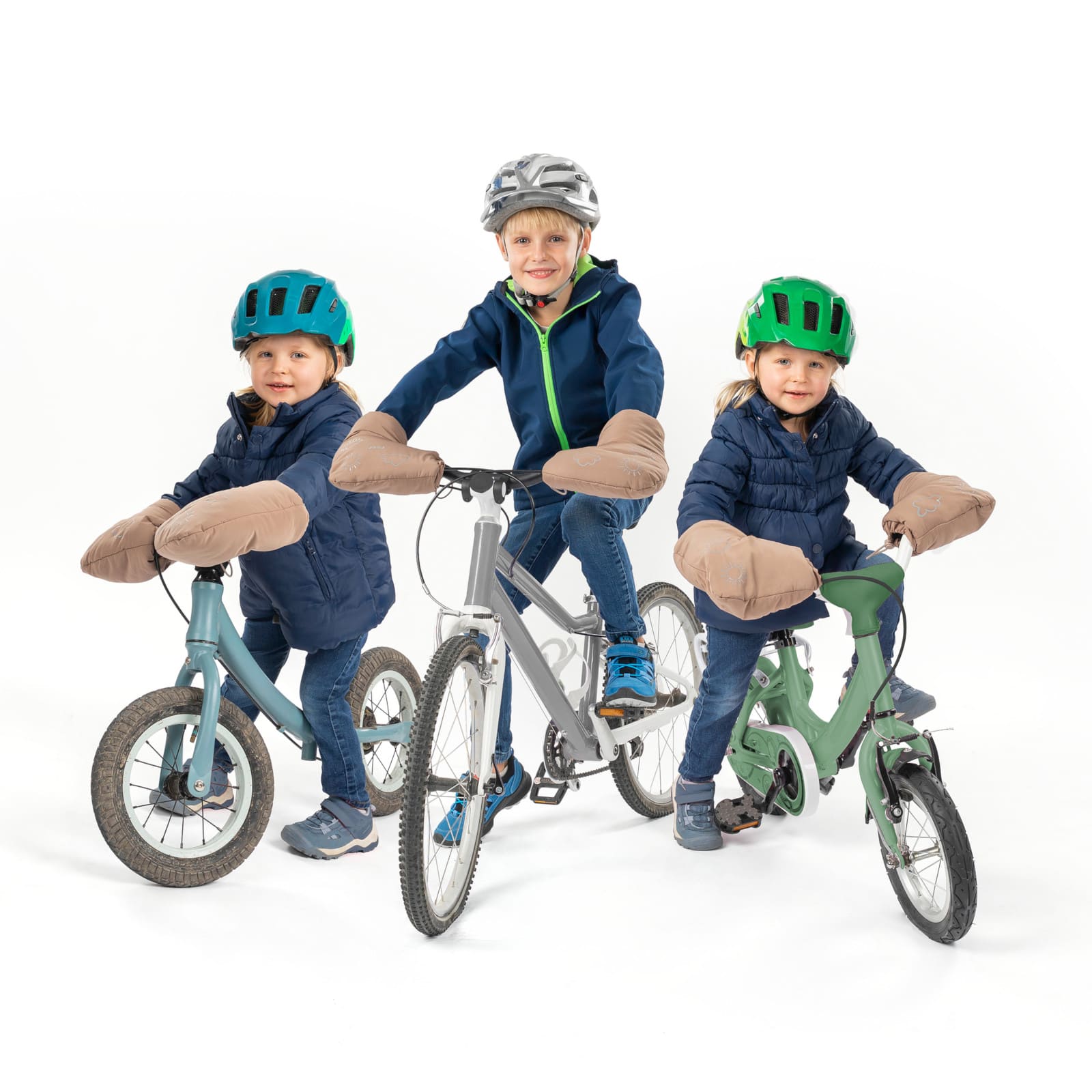 Die Lenker-Handschuhe halten die Hände beim Fahren angenehm warm und ermöglichen durch den direkten Kontakt zu Lenker und Bremsen ein sicheres Greifen. Die grosse Öffnung erleichtert das An- und Ausziehen, während die universelle Befestigung mittels Kordelzug eine einfache Montage erlaubt. Sie sind vielseitig einsetzbar für Fahrrad, Laufrad, Roller oder Dreirad und bieten wind- sowie wasserabweisenden Schutz. Hergestellt aus hautfreundlichen Materialien, bestehen sie aussen aus recyceltem Polyester (rPET) und innen aus weichem Polyesterfutter.