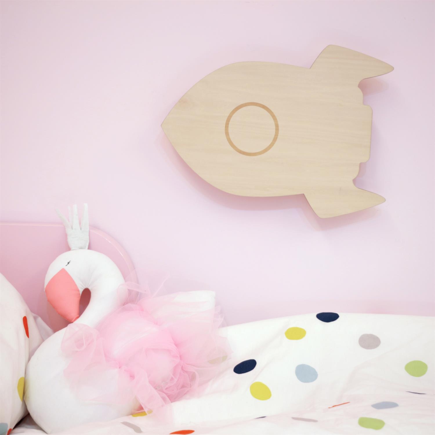 Die liebevoll gestaltete Silhouette der Rakete bringt spielerischen Charme ins Zimmer und wird schnell zum vertrauten Begleiter für angenehme Traumstunden.