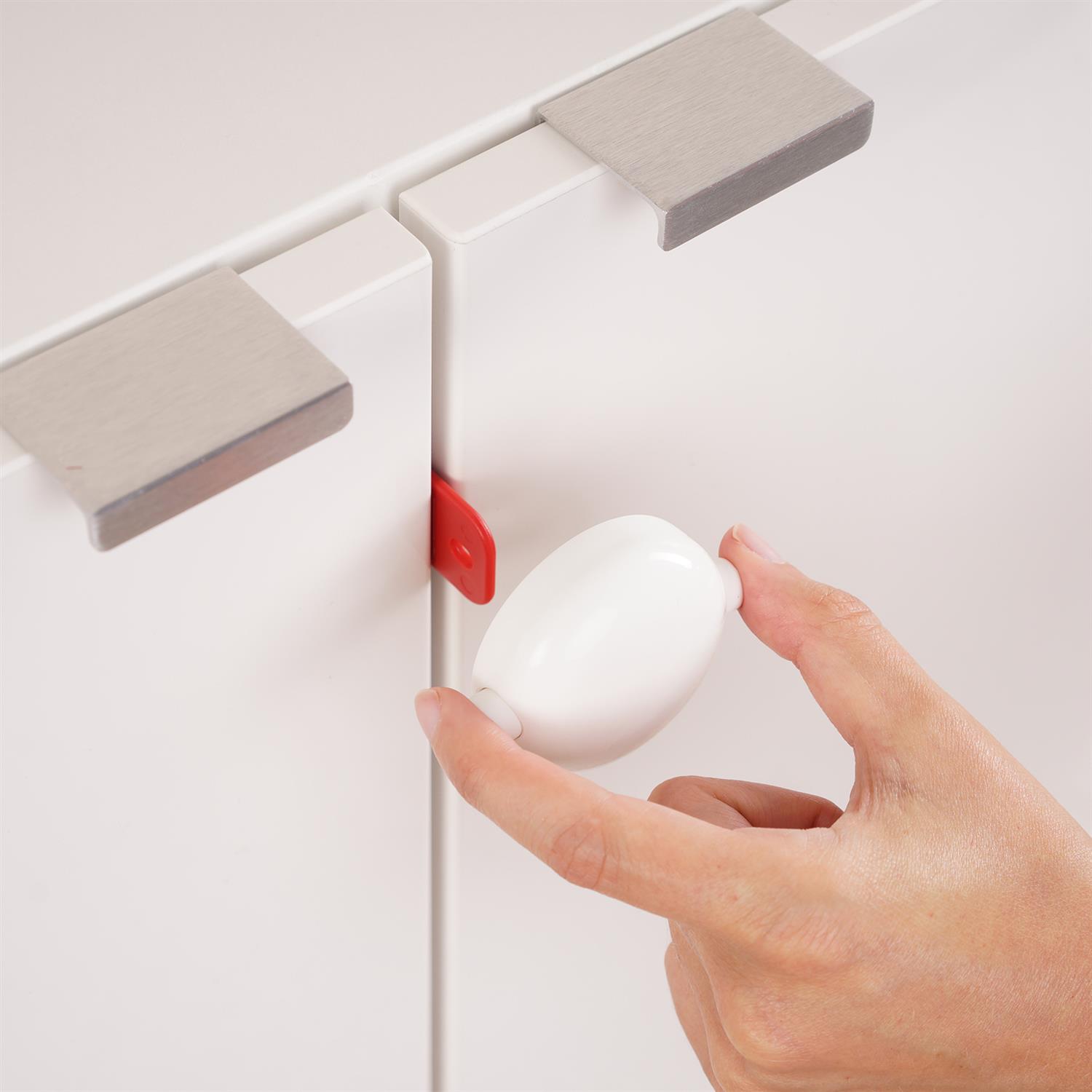 Das Schloss verhindert, dass Kinder Schranktüren öffnen und an gefährliche Gegenstände gelangen. Durch die zuverlässige Verriegelung reduzierst du das Risiko von Unfällen und verschaffst dir mehr Ruhe im Alltag.