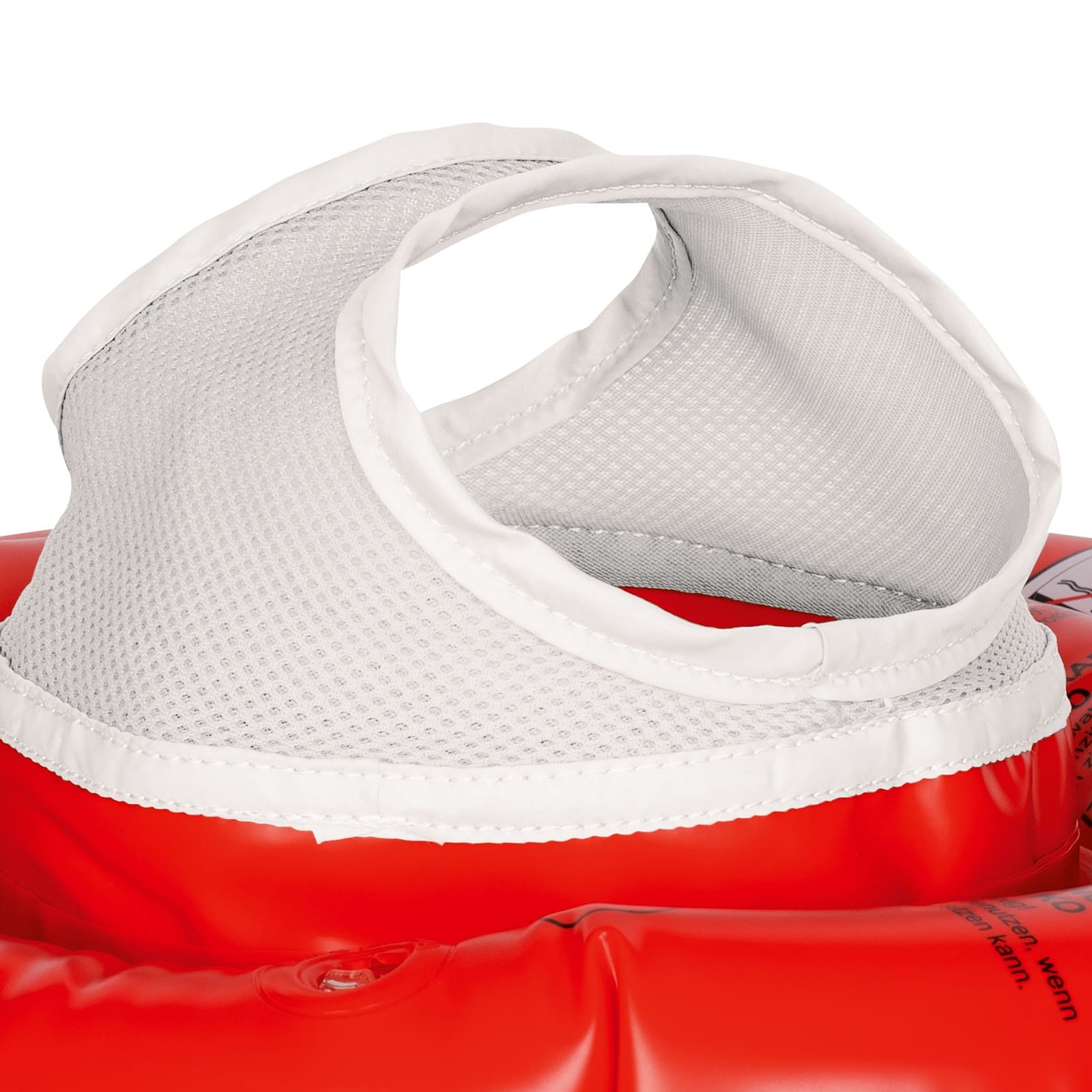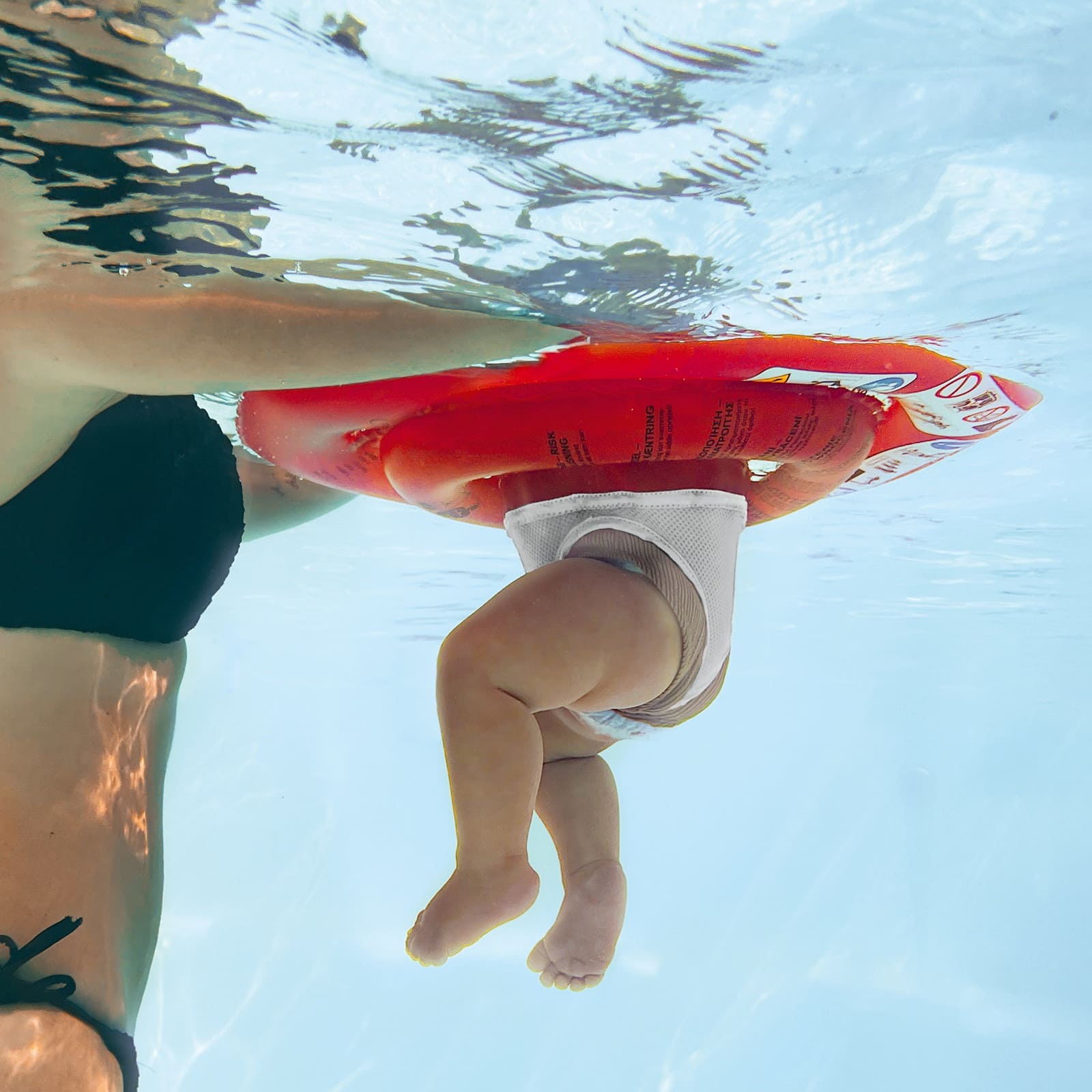 Durch die gute Unterstützung von Kopf und Rumpf gelingt es Eltern einfacher, behutsam zu begleiten und erste Schwimmübungen im entspannten Rahmen durchzuführen.