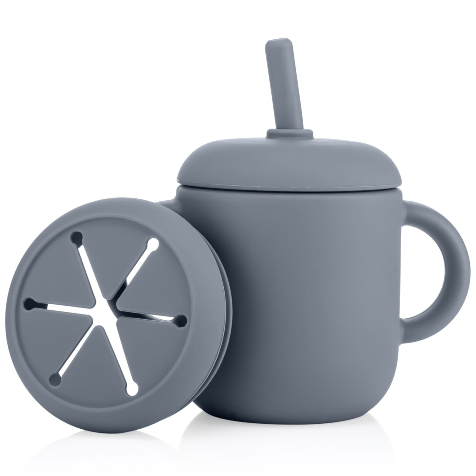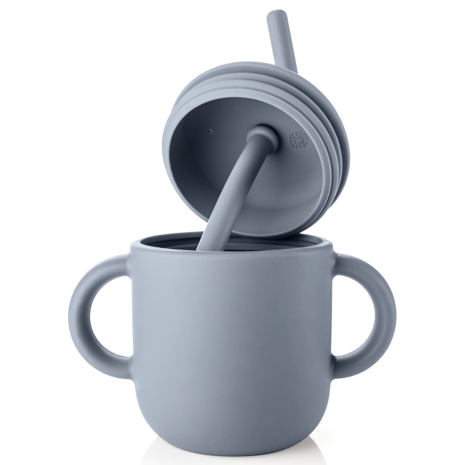 REER Trinklernbecher mit Strohhalm 2in1 grau – kompakt und kinderfreundlich