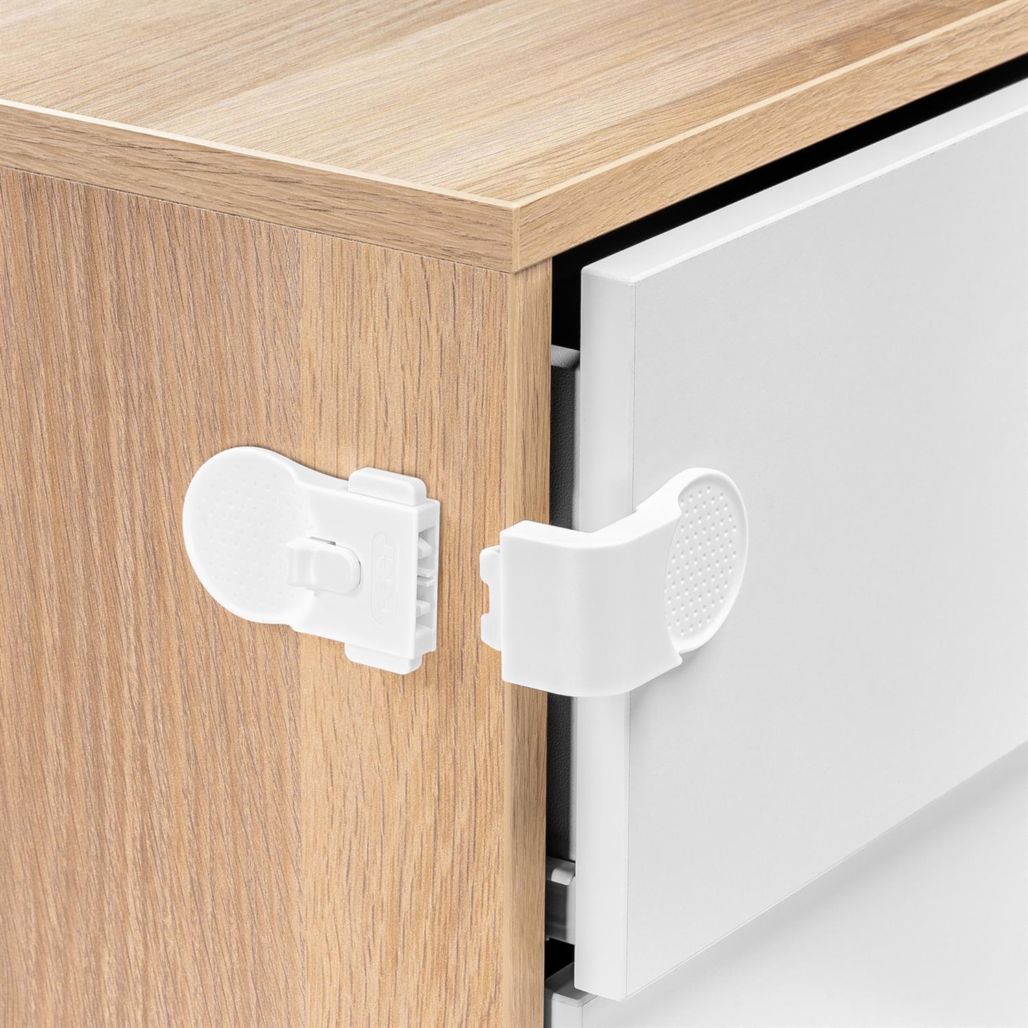 Die REER Schrank- und Schubladensicherungen geben dir die beruhigende Gewissheit, dass neugierige Kinder nicht unbemerkt an Schränke, Schubladen oder Elektrogeräte gelangen. Sie verhindern effektiv Zugriffe auf gefährliche Gegenstände und reduzieren damit Unfallrisiken im Haushalt.