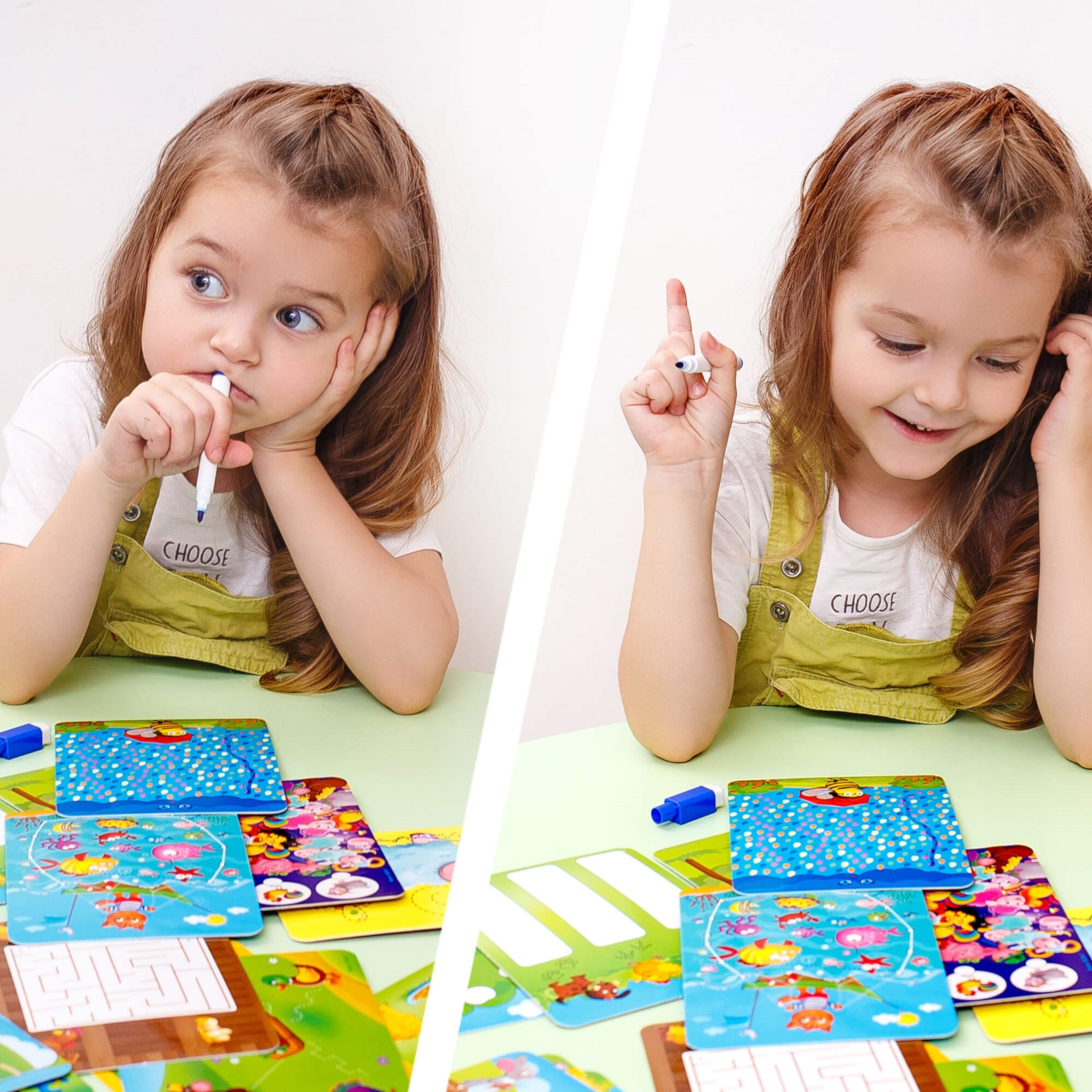 Farbenfrohe, kindgerechte Illustrationen wecken Neugier und machen die Aufgaben attraktiv. Das handliche Format der Karten und der Stift ermöglichen unkomplizierten Einsatz zu Hause, im Kindergarten oder unterwegs.