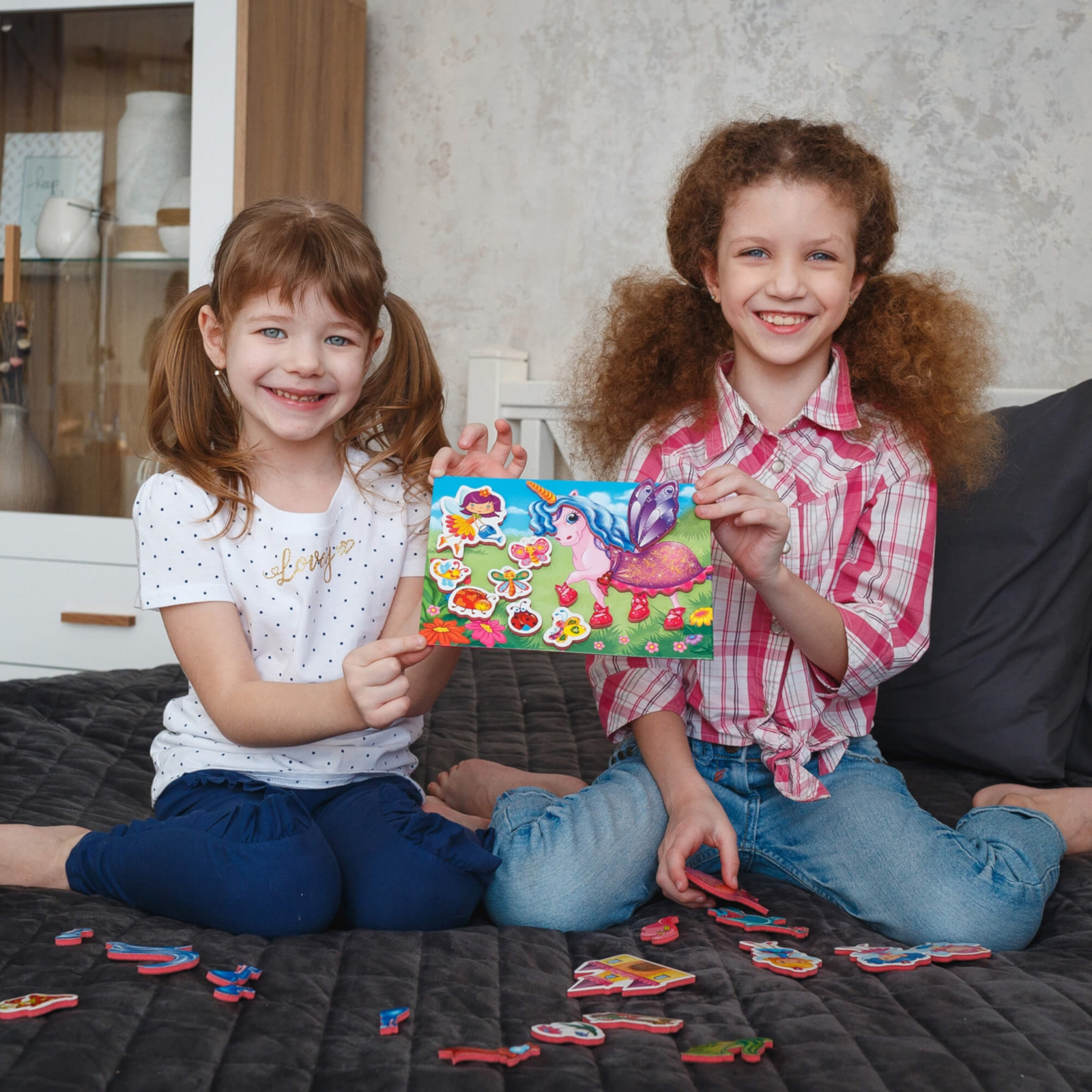 Jeder Magnet besteht aus drei Schichten: stabiler Karton, weicher Schaumstoff und eine starke Magnetbasis. Die grossformatigen, voluminösen Teile sind leicht zu greifen und bestens geeignet für kleine Kinderhände.