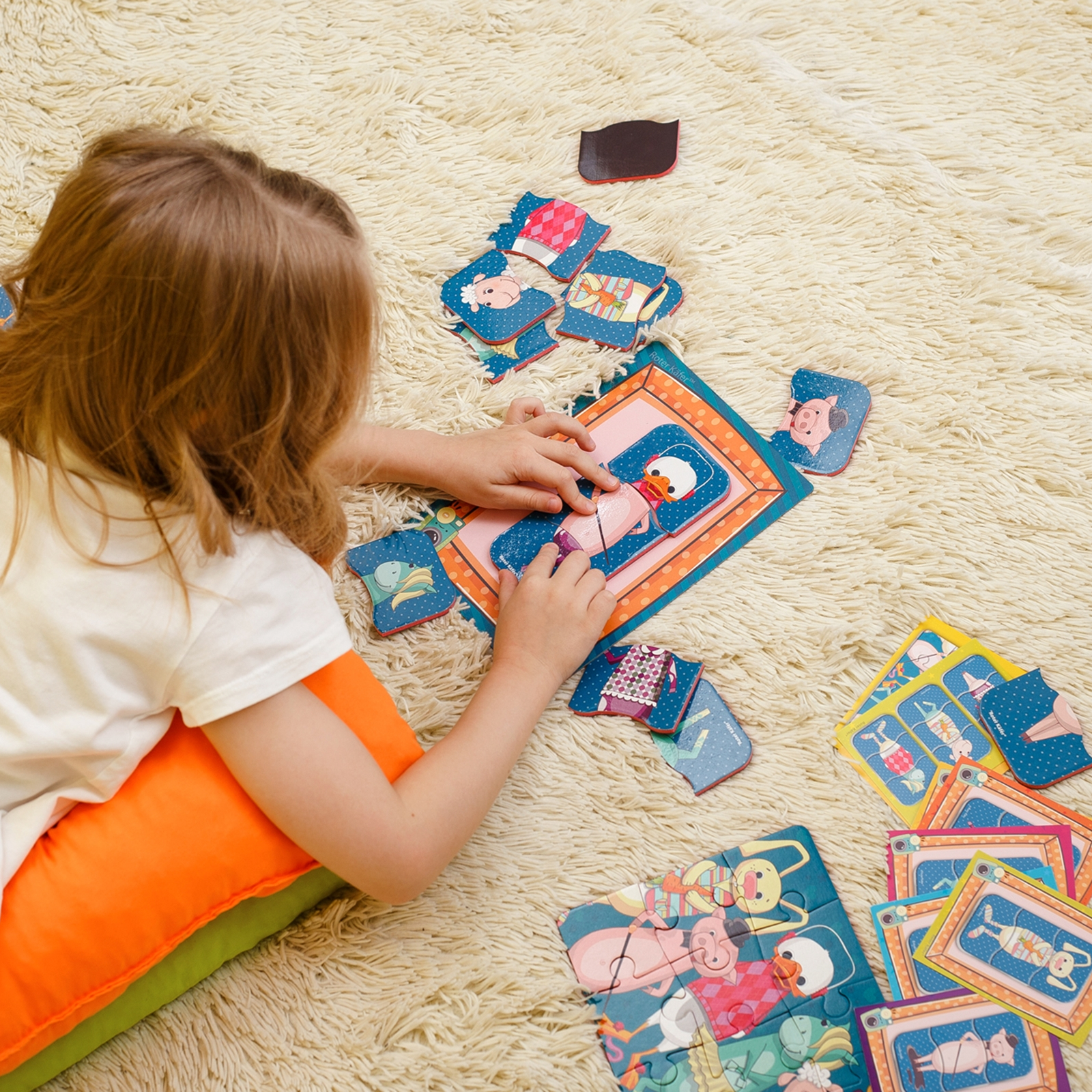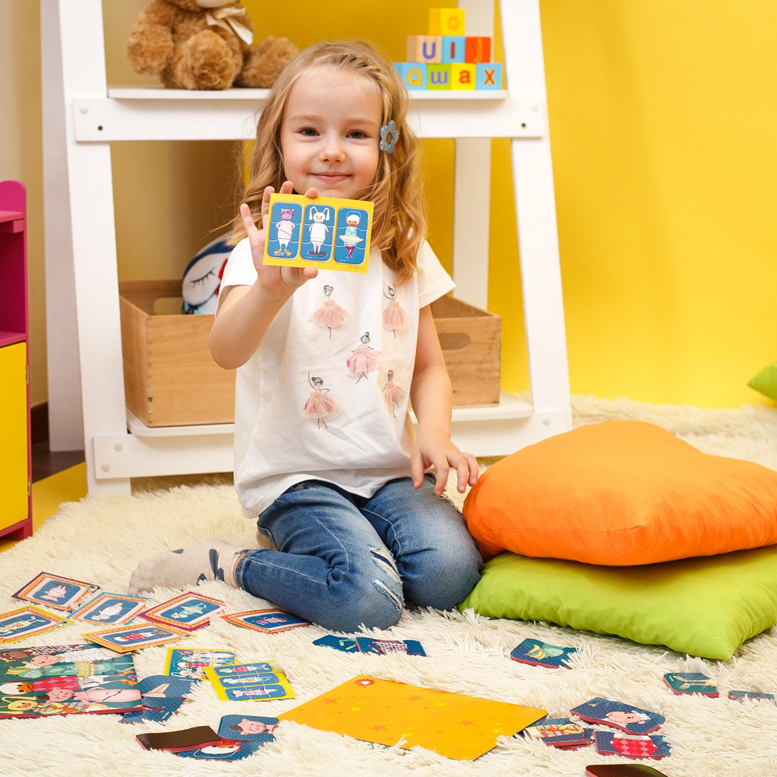Dank der magnetischen Rückseite haften die Motive an vielen Oberflächen und bleiben dort stabil. Das macht das Spiel flexibel einsetzbar und unabhängig von festen Spielplätzen.