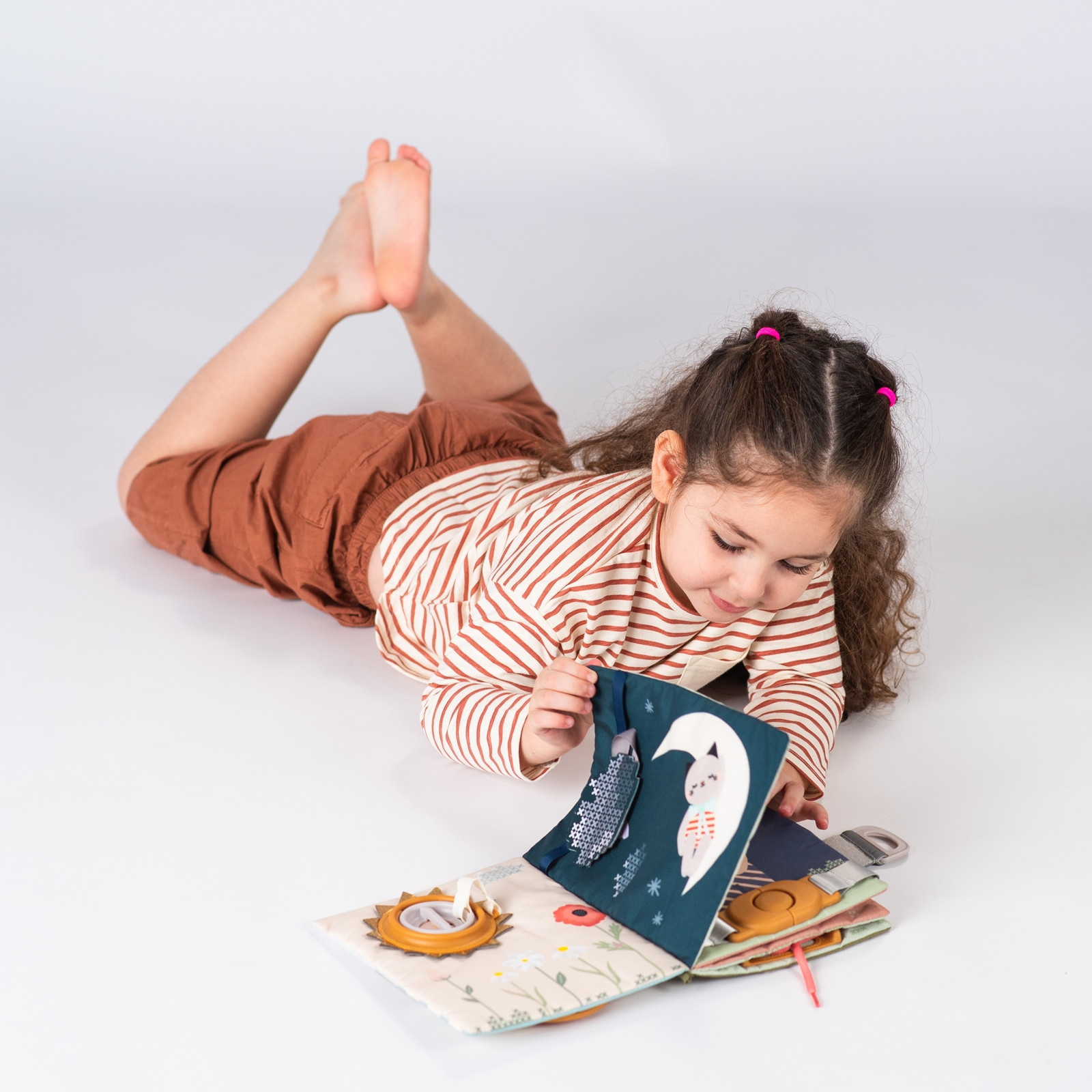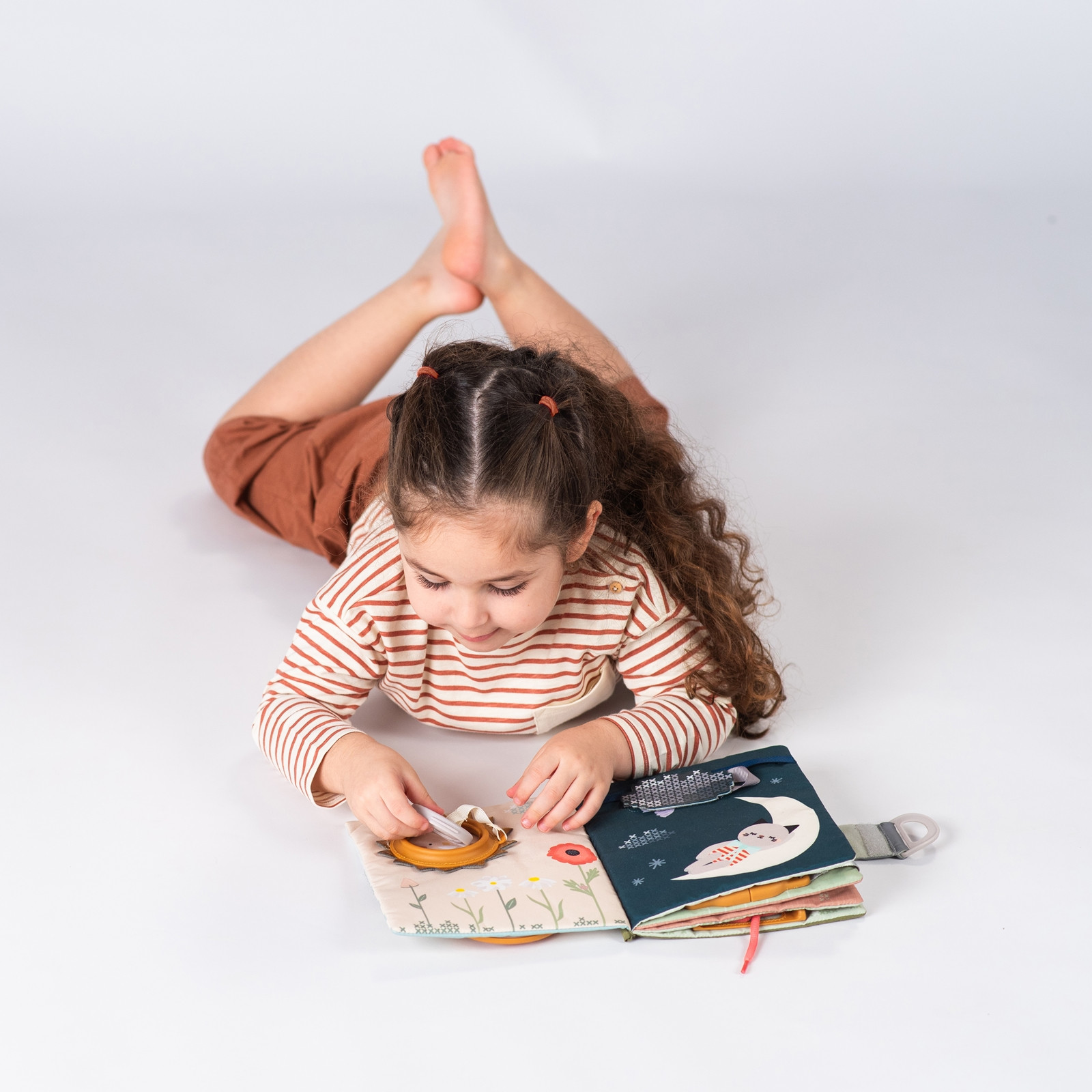 Das TAF-TOYS Aktivitätenbuch Fantasy ist ein handliches Stoffbuch für Kleinkinder ab 18 Monaten, das zum eigenständigen Erkunden einlädt. Mit 15 abwechslungsreichen Aktivitäten wie Reissverschlüssen, Schnallen, Schnürsenkeln und Peek-a-boo-Fenstern fördert es spielerisches Lernen.